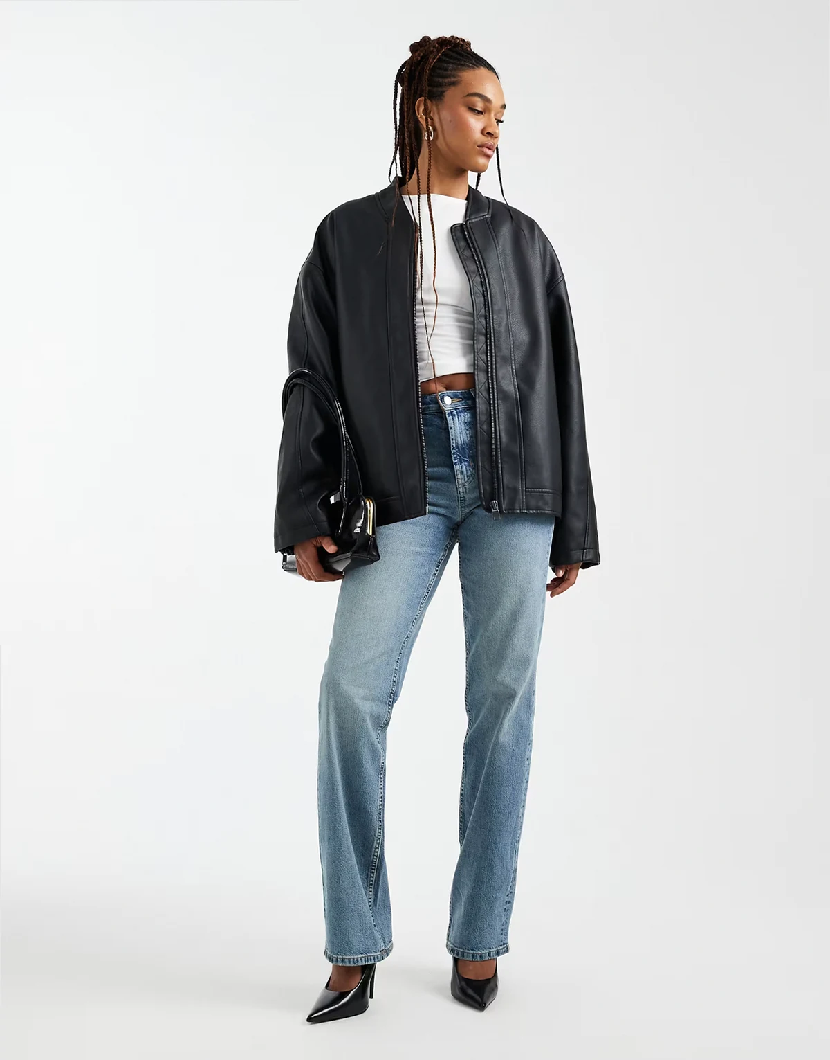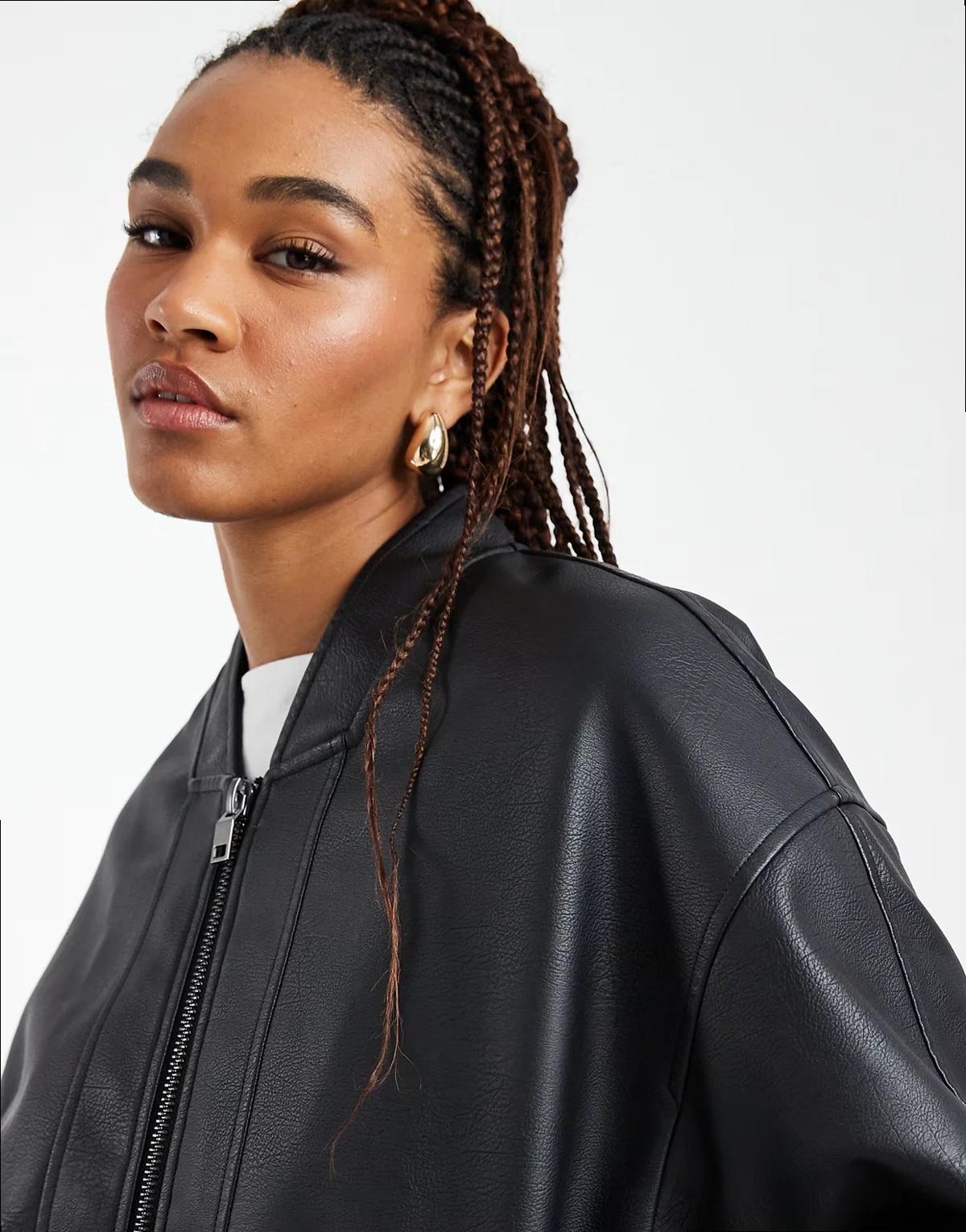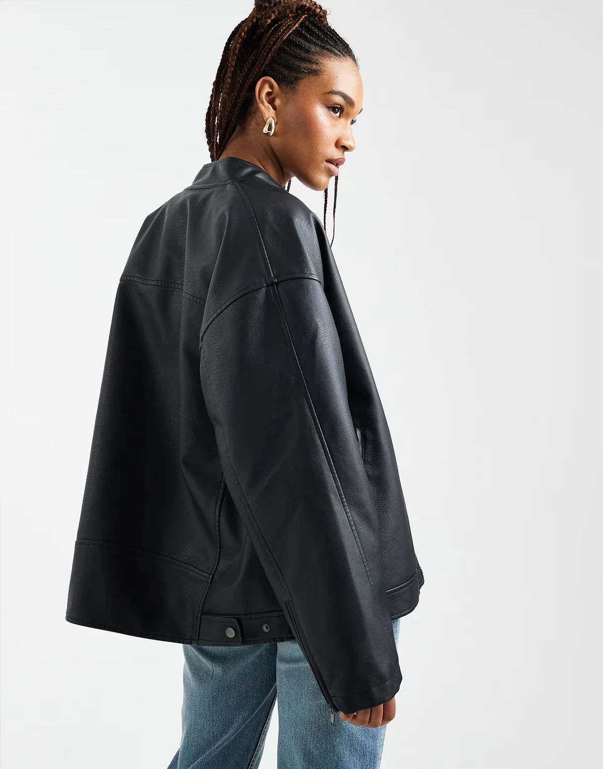 ASOS DESIGN Tall – Bikerjacke aus Kunstleder in Schwarz mit gestepptem Futter