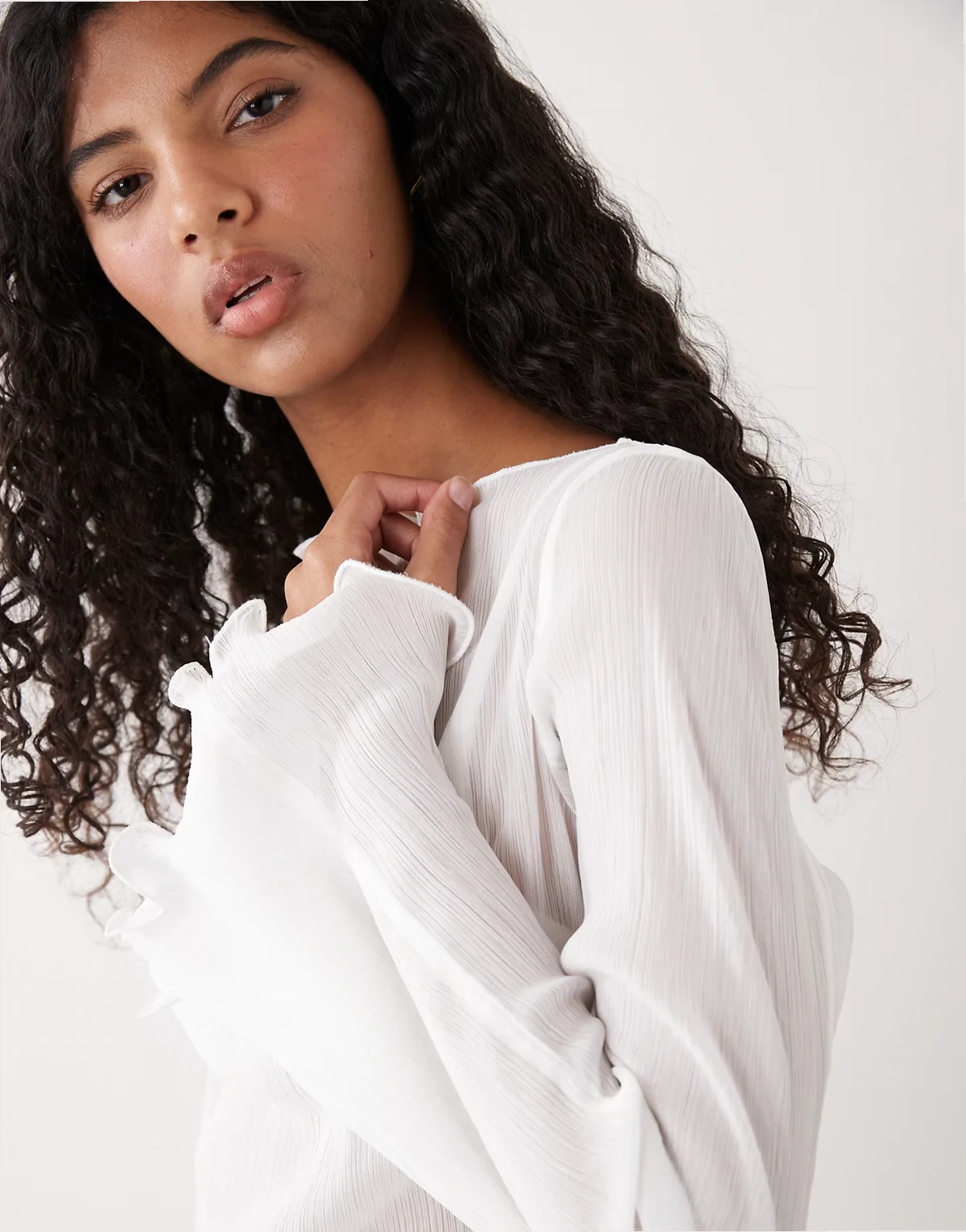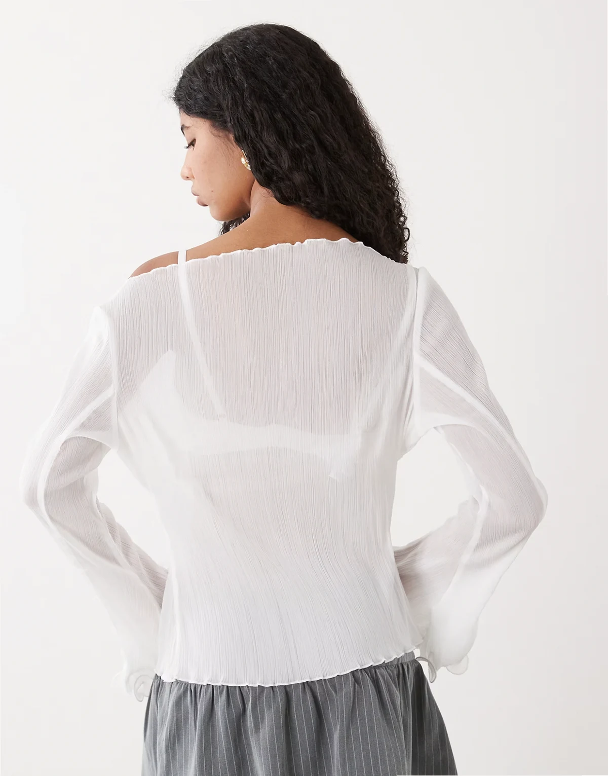 – Transparentes, fließendes Oberteil in Weiß mit langen Ärmeln
