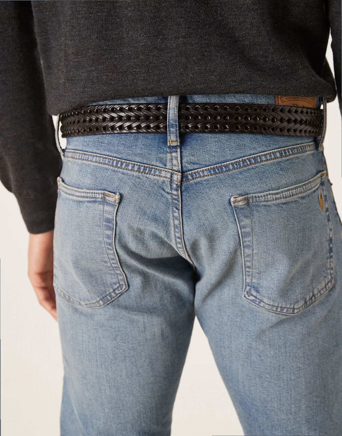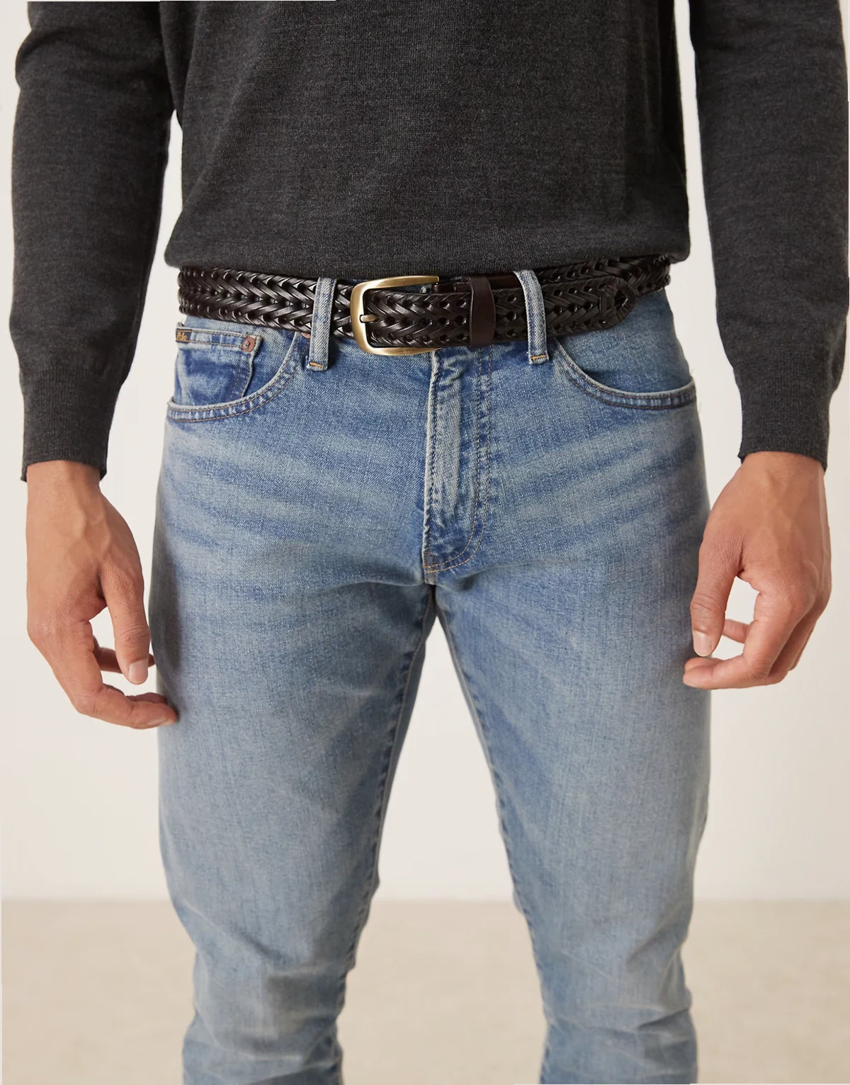 – Eleganter, gewebter Ledergürtel in Braun mit goldfarbener Schnalle