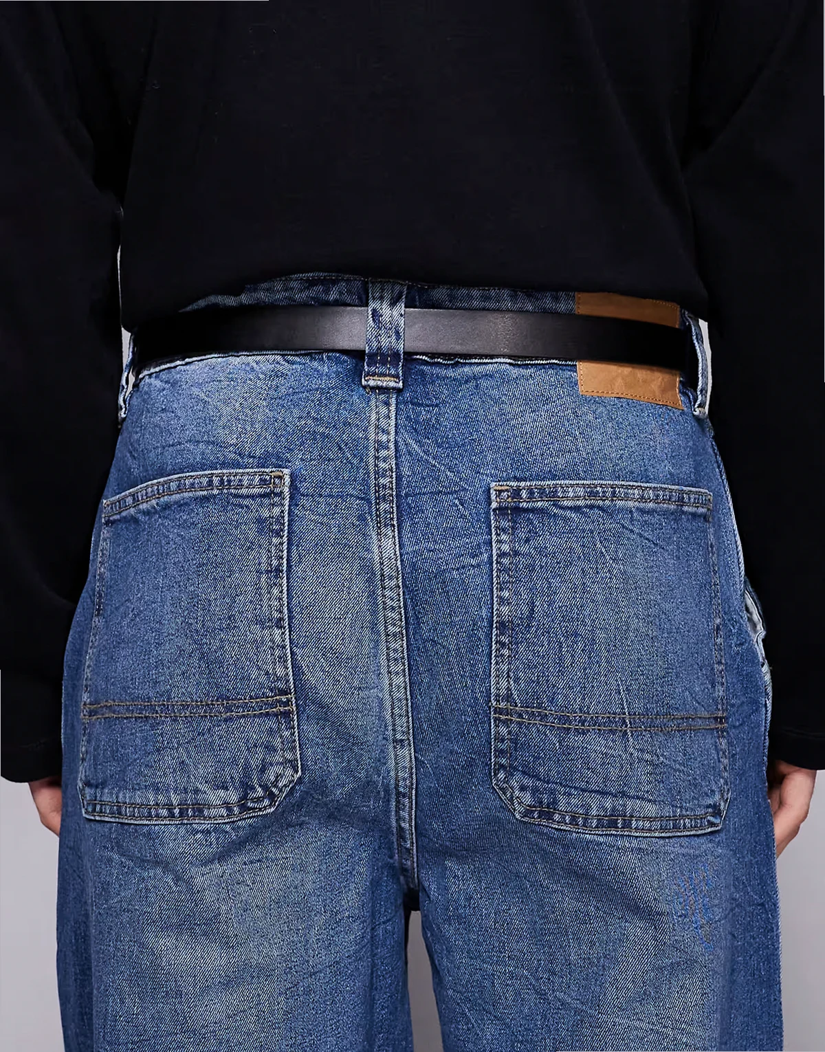 – Schmaler Gürtel in Schwarz mit gebogener Schnalle und Metallspitze