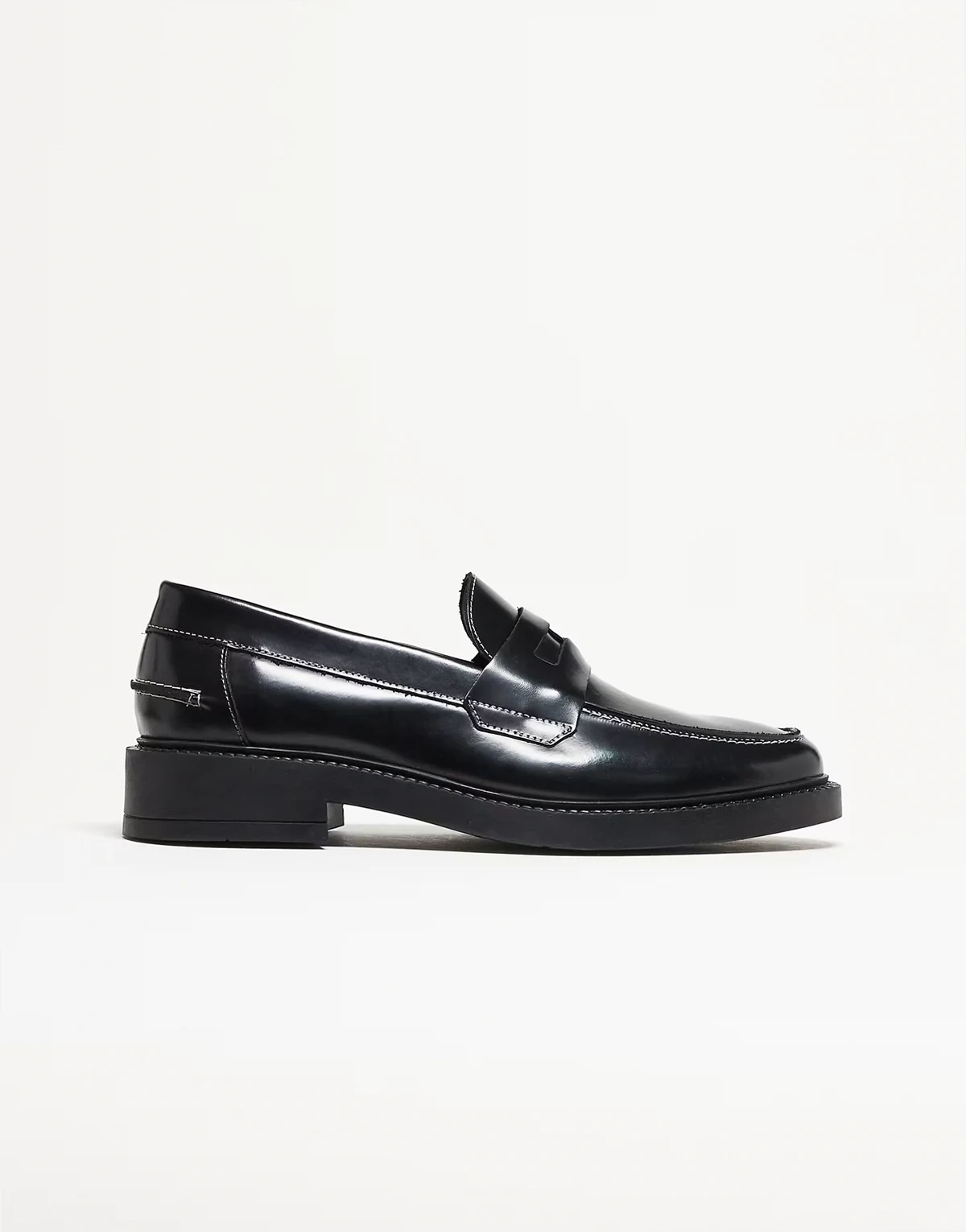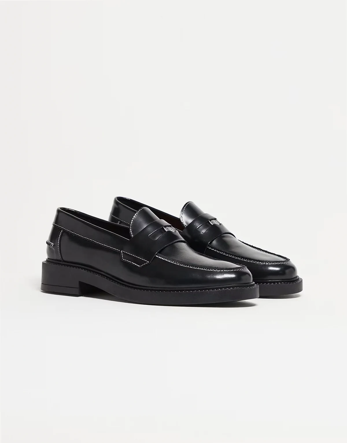 – Made in Portugal – Penny-Loafer aus Leder in Schwarz mit Kontrastnaht und goldfarbenem Besatz