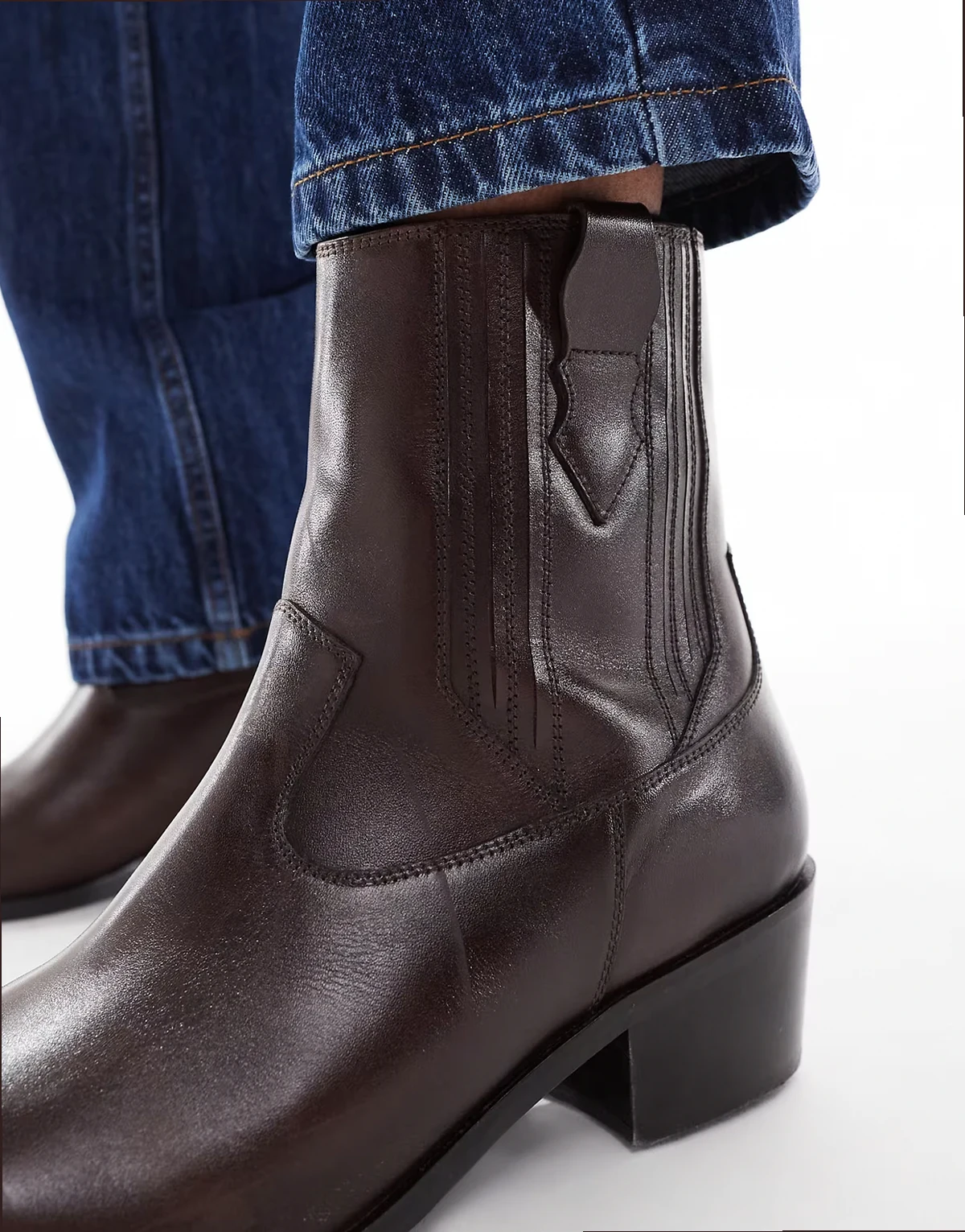 –Chelsea-Westernstiefel aus Leder in Braun mit kubanischer Sohle