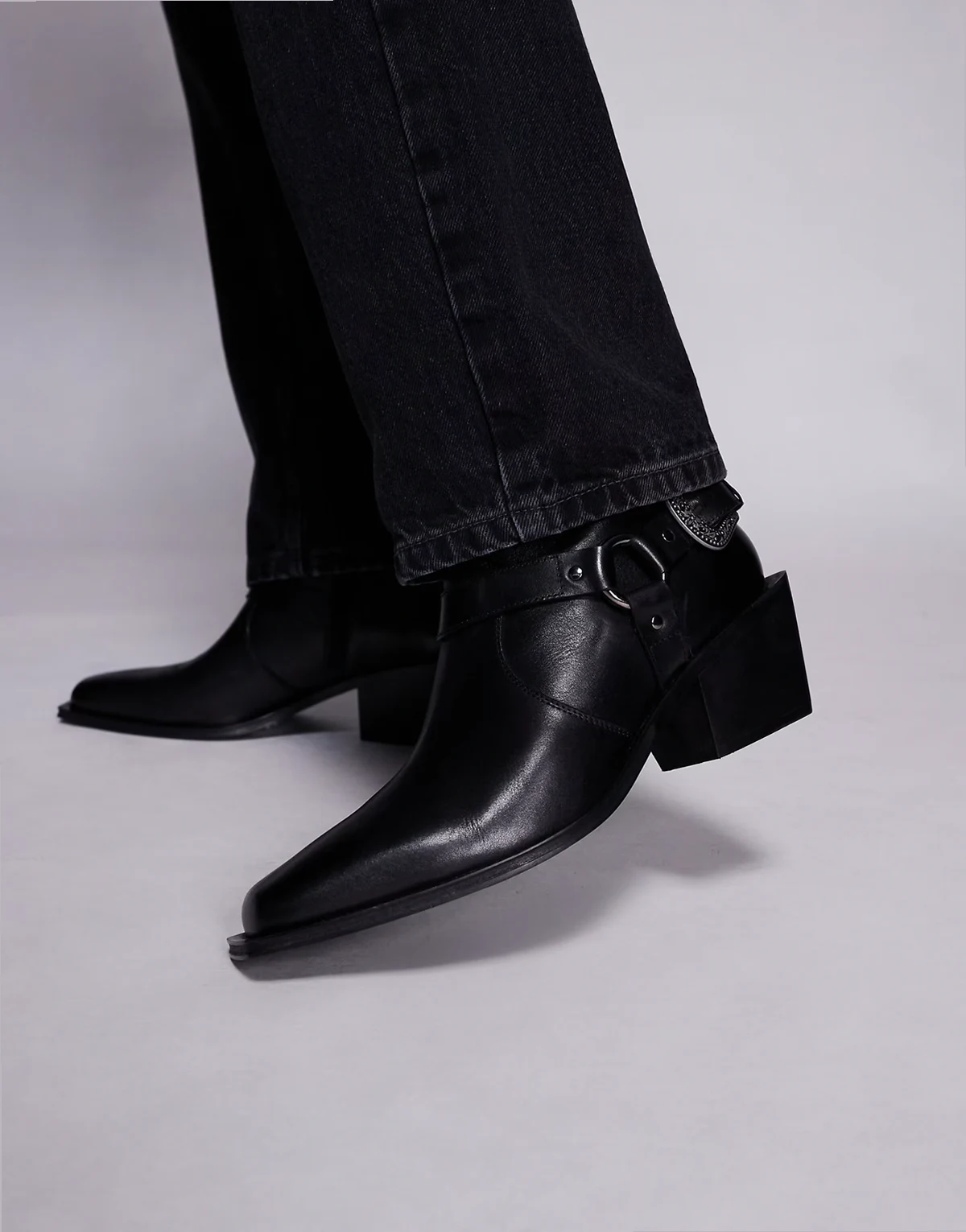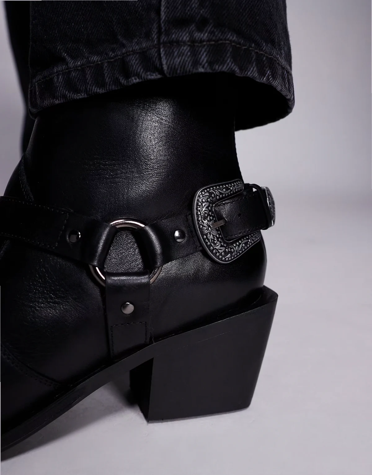 – Chelsea-Stiefel aus schwarzem Leder mit Schnalle und kubanischem Absatz