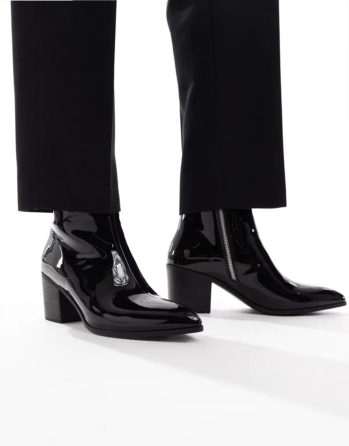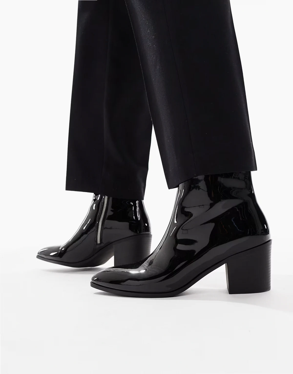 – Chelsea-Stiefel mit Absatz in Lackoptik in Schwarz