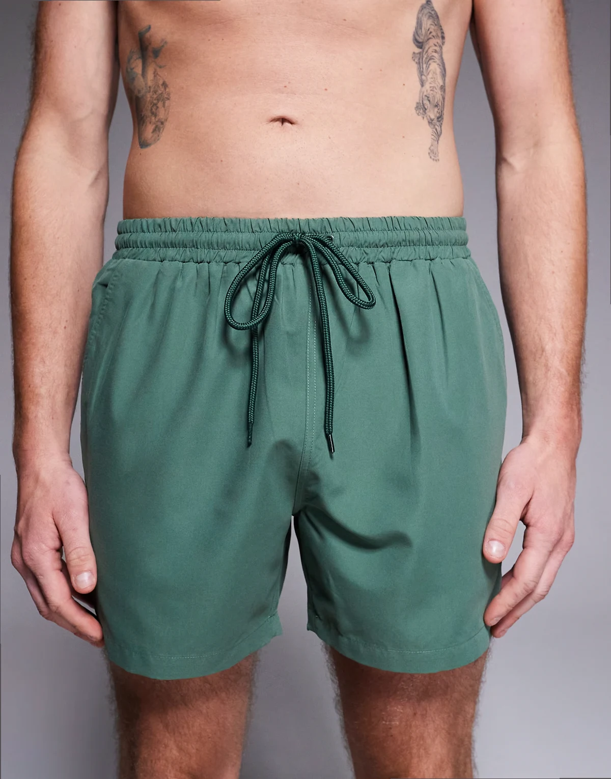 – Kurze Badeshorts mit Military-Muster in Khaki