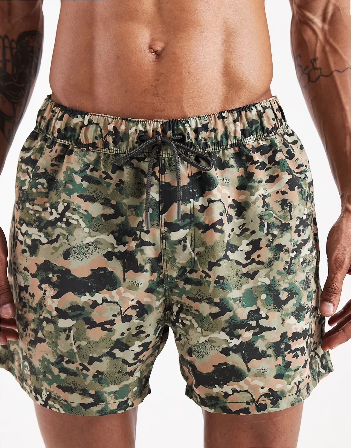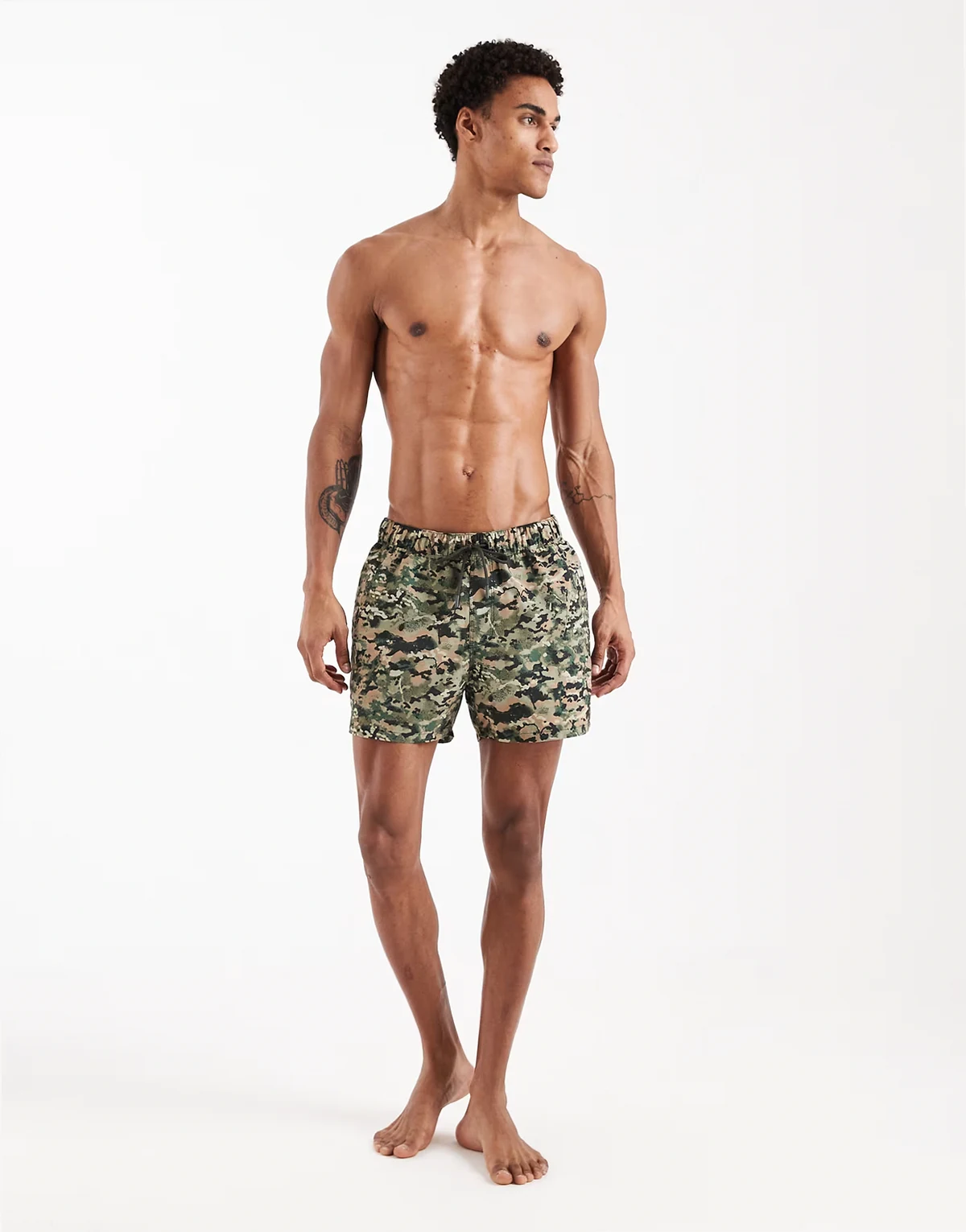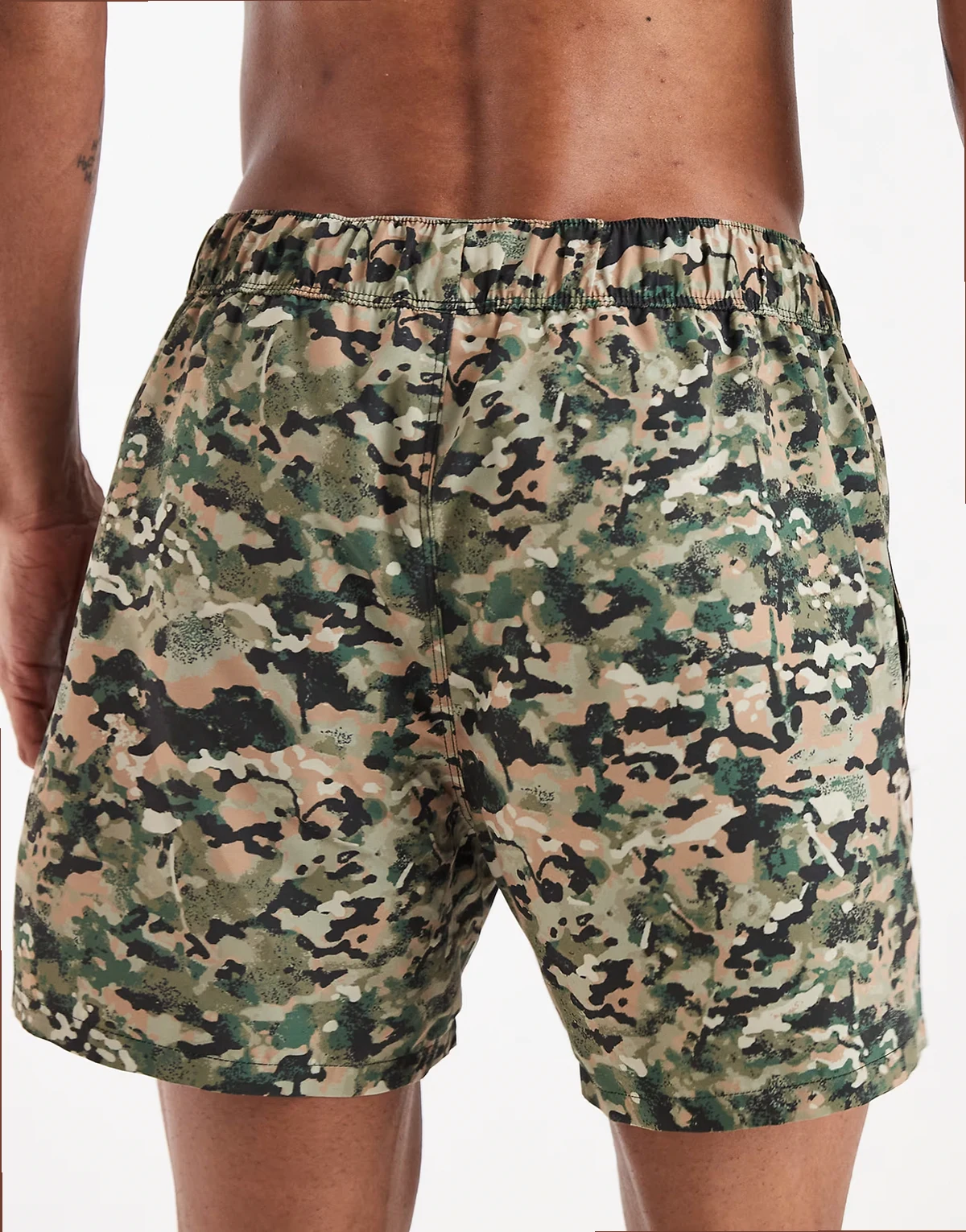 – Kurze Badeshorts mit Military-Muster in Khaki