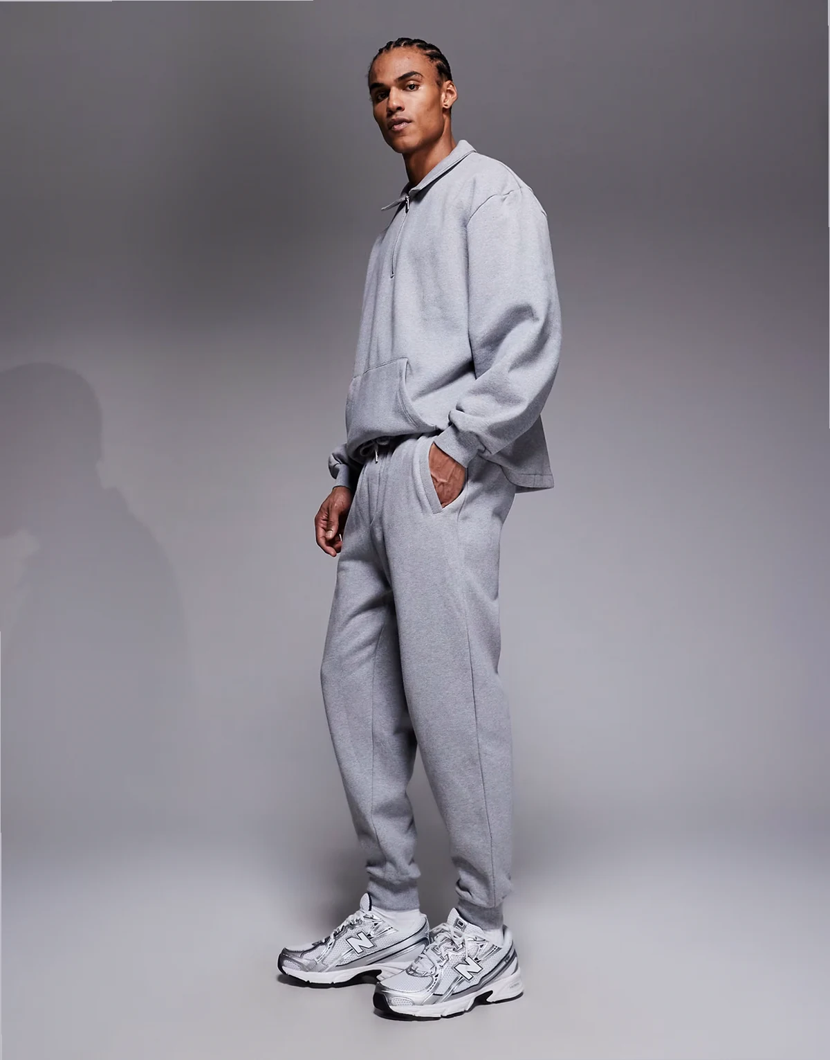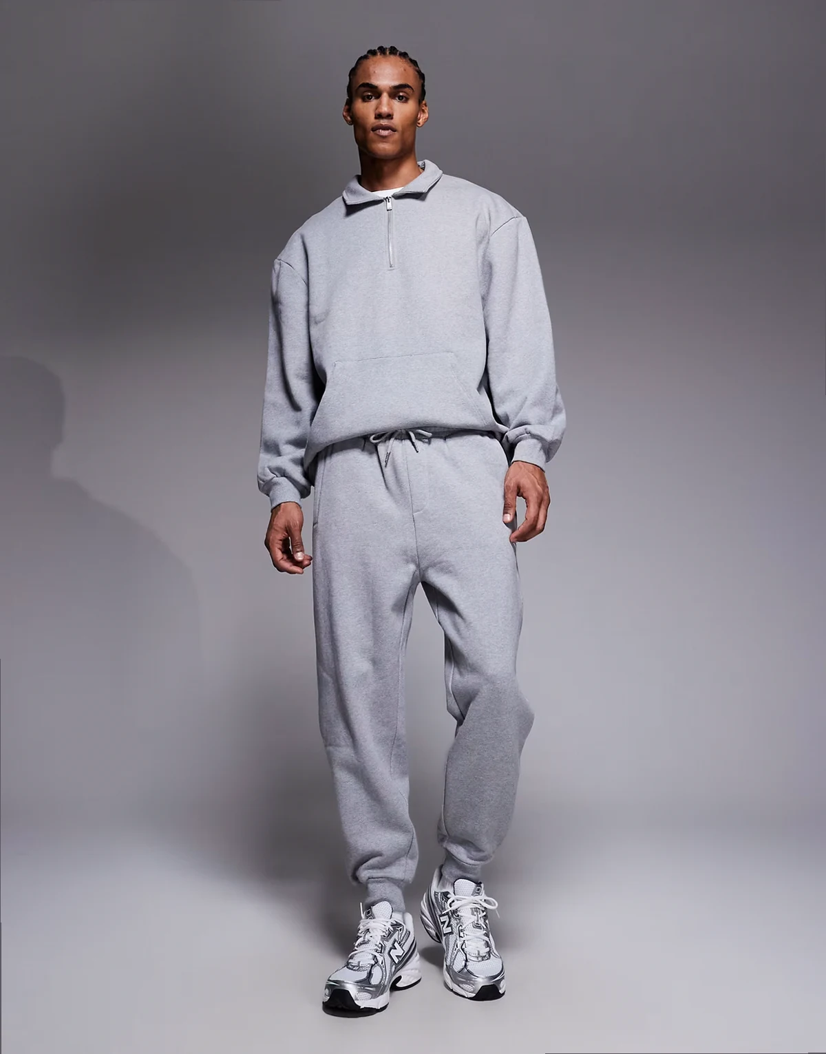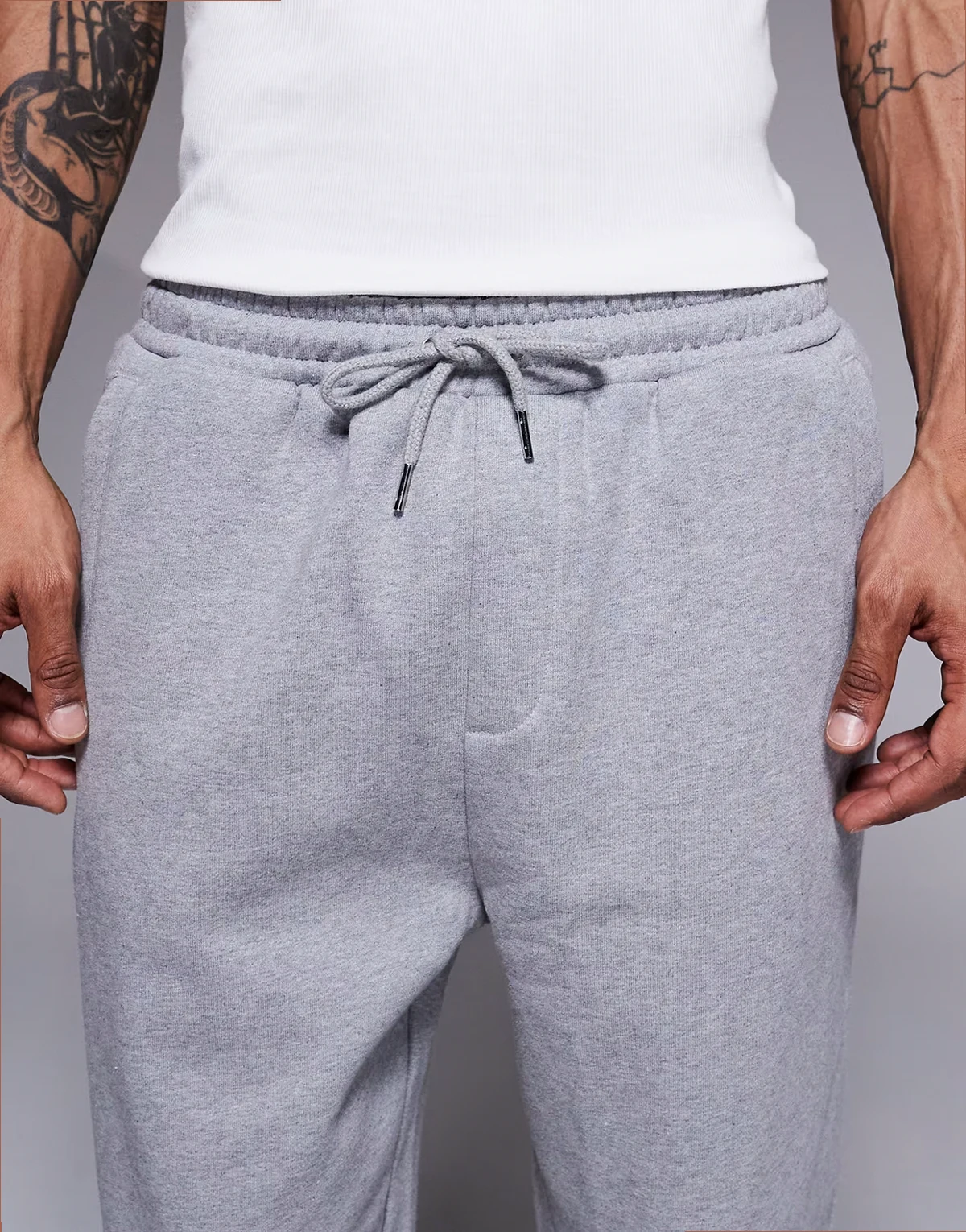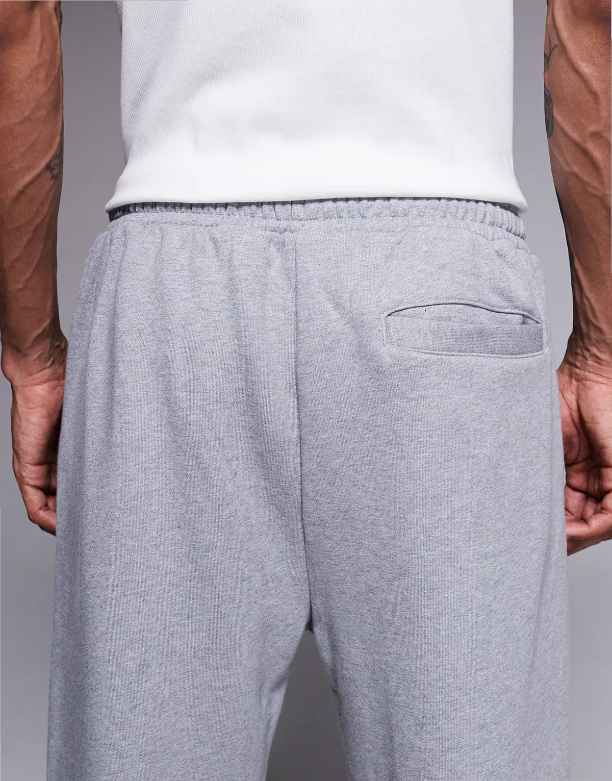 – Schmal zulaufende Jogginghose in meliertem Grau mit gerippten Bündchen