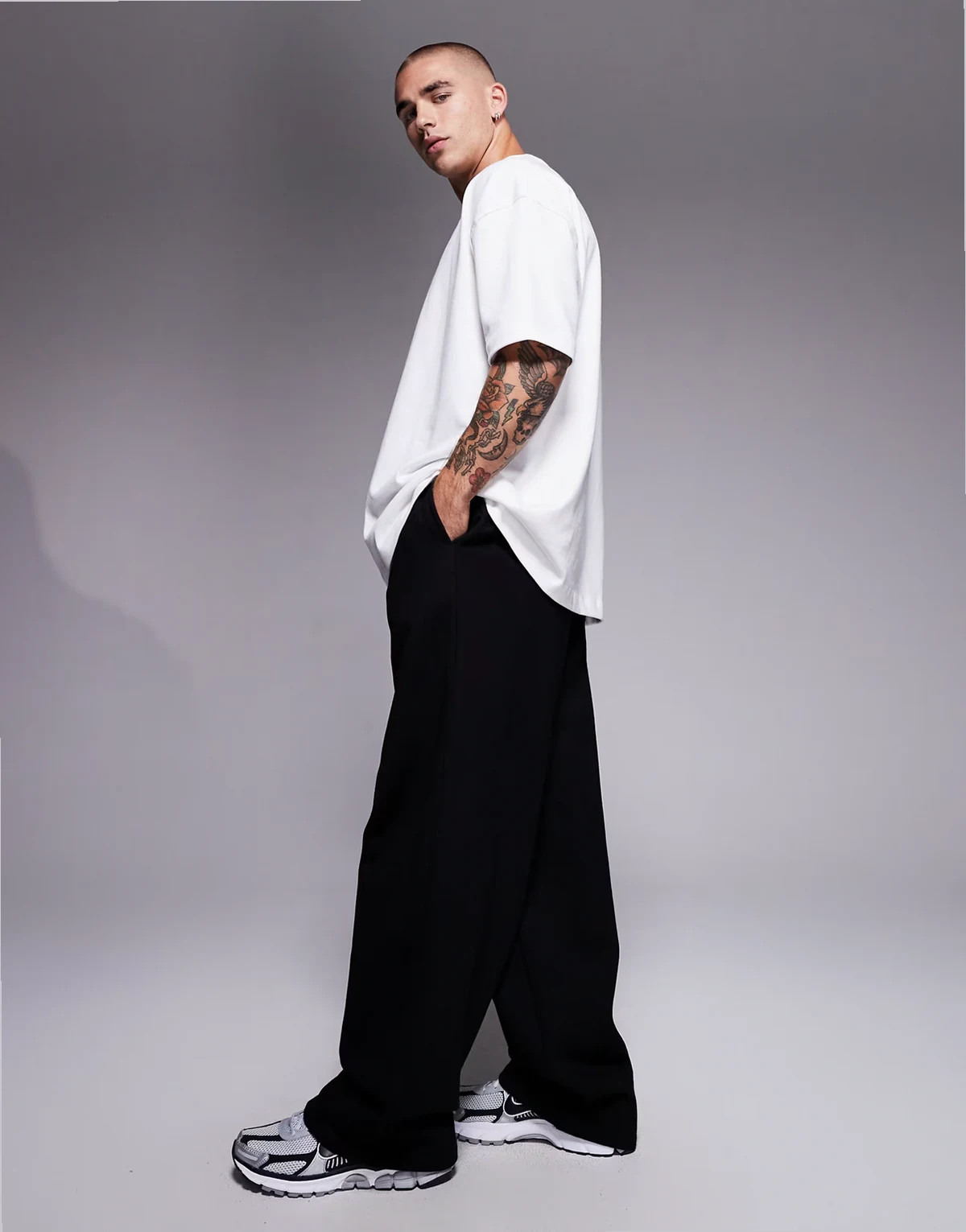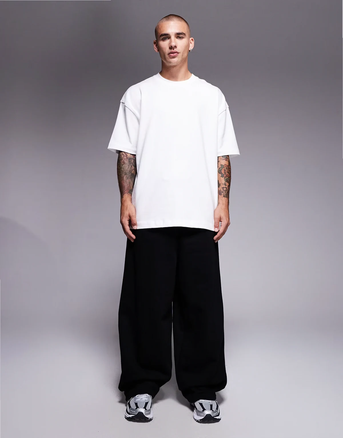 – Hochwertige Loose Fit Jogginghose aus schwerem Stoff in Schwarz, 400 g/m²