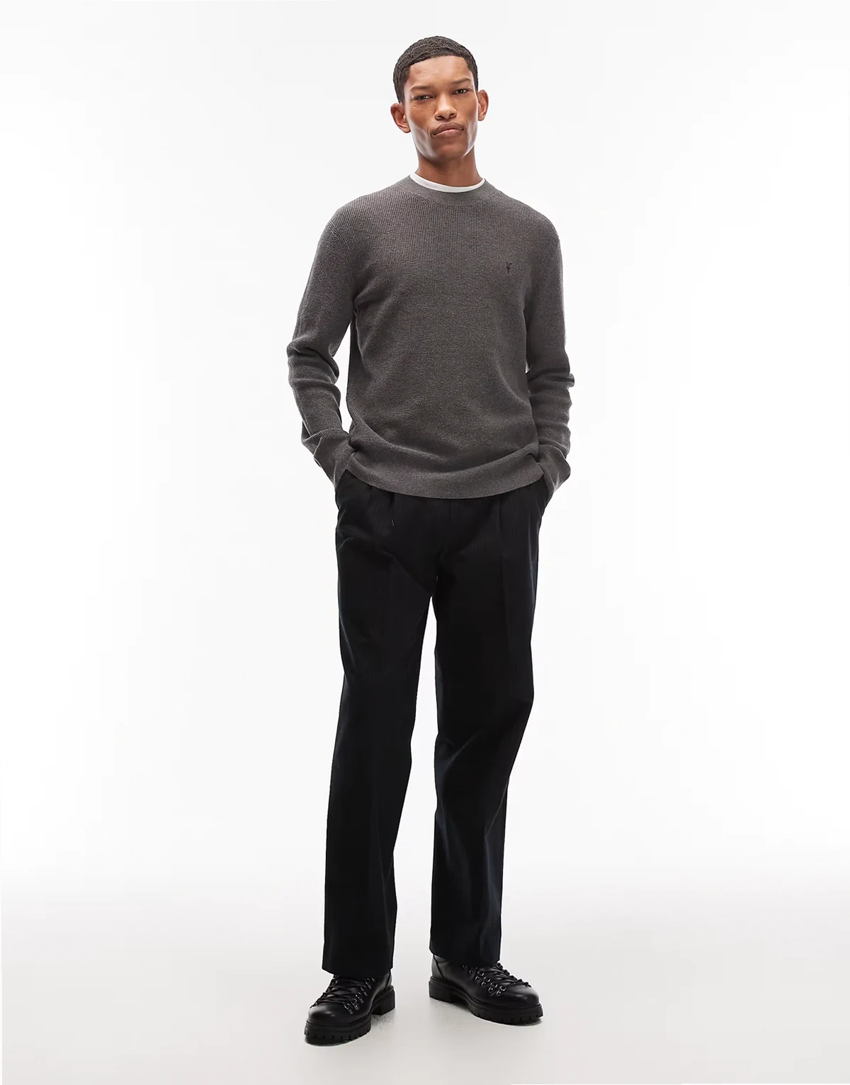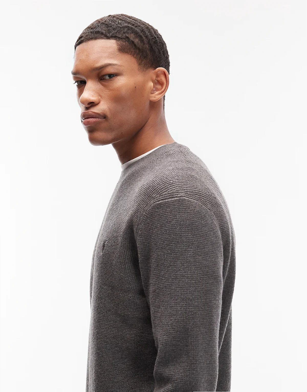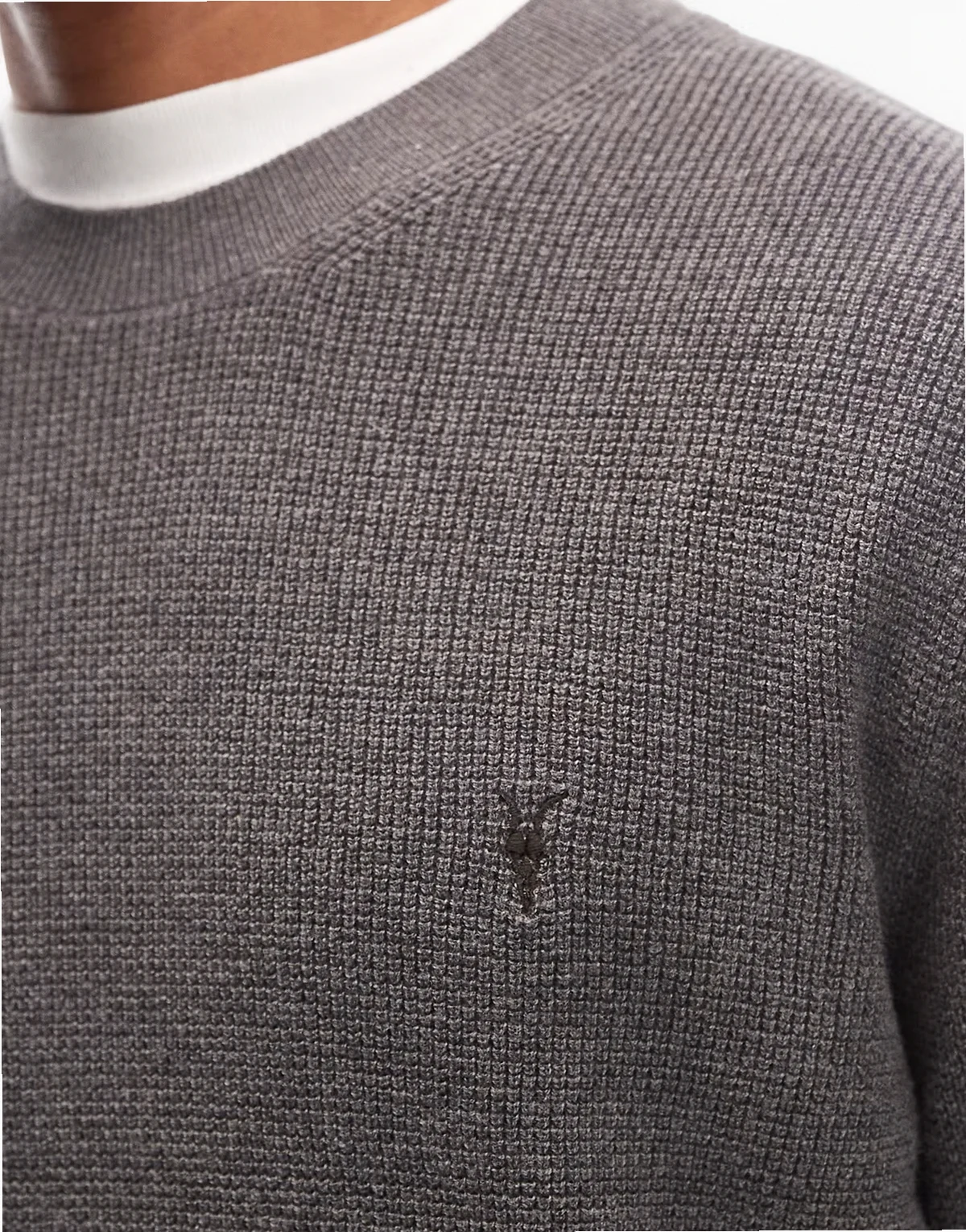 – Waffelstrickpullover in Anthrazitgrau mit Rundhalsausschnitt und Logo
