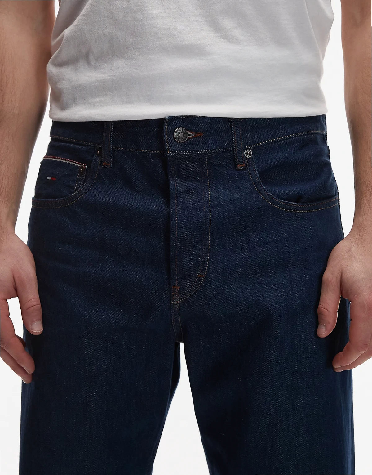 Denim ohne Stretchanteil: dunkelblaue Waschung