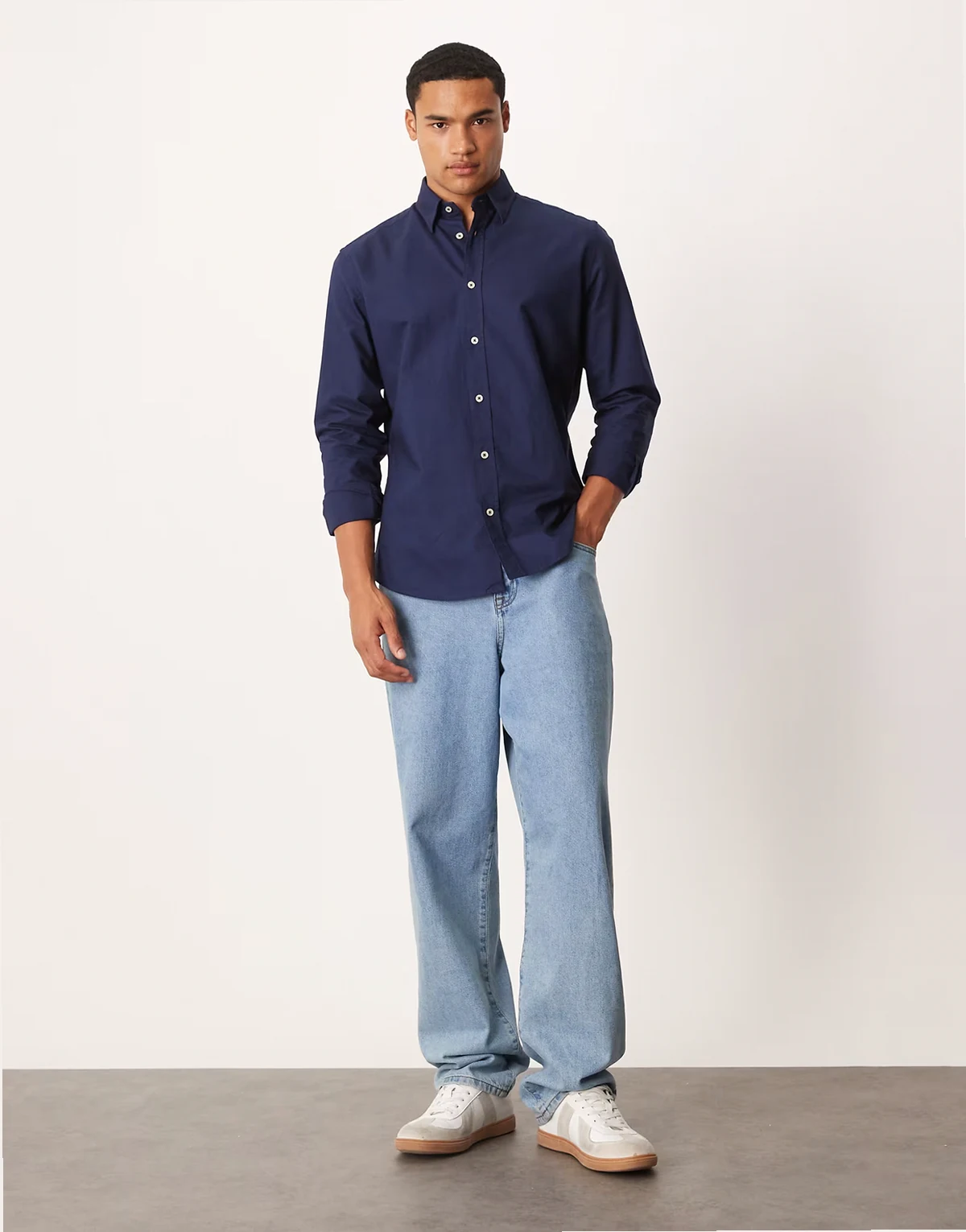 – Aylin – Jeanshemd in Indigoblau mit Kontrastnaht, Kombiteil