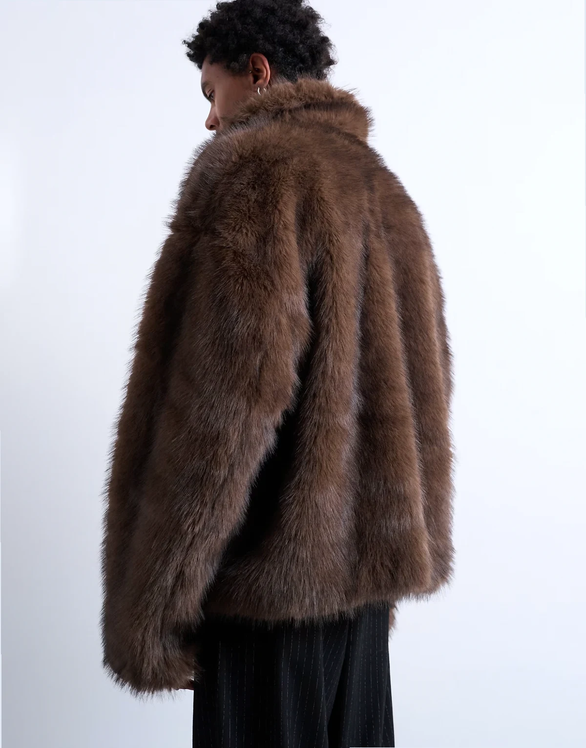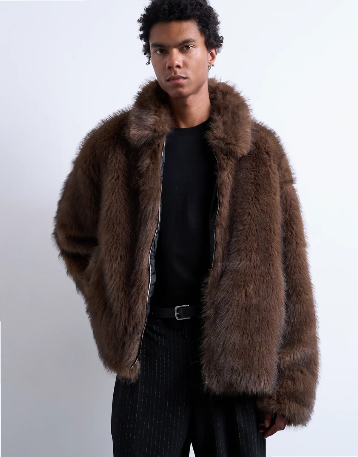 Dieser Mantel ist aus weichem Kunstpelz in einem Braunton gefertigt. Dieses Modell im Regular Fit wird durch einen breiten Kragen, einen Reißverschluss und Seitentaschen abgerundet.