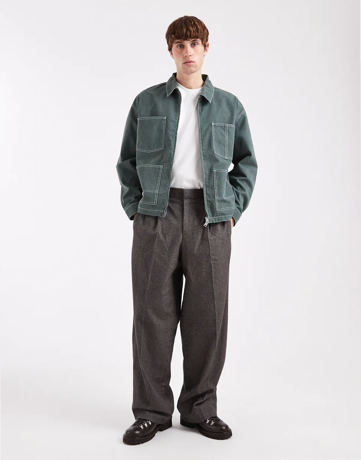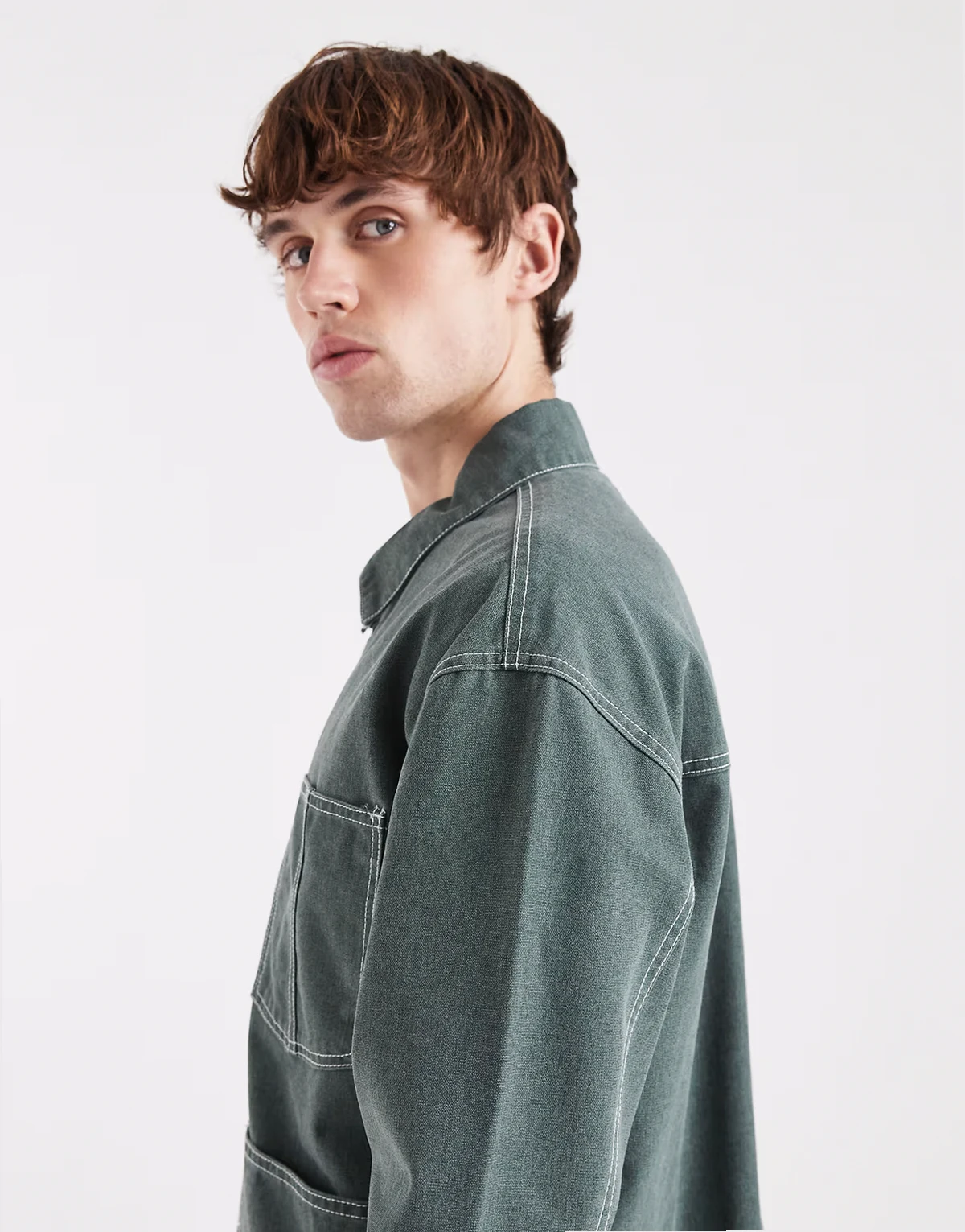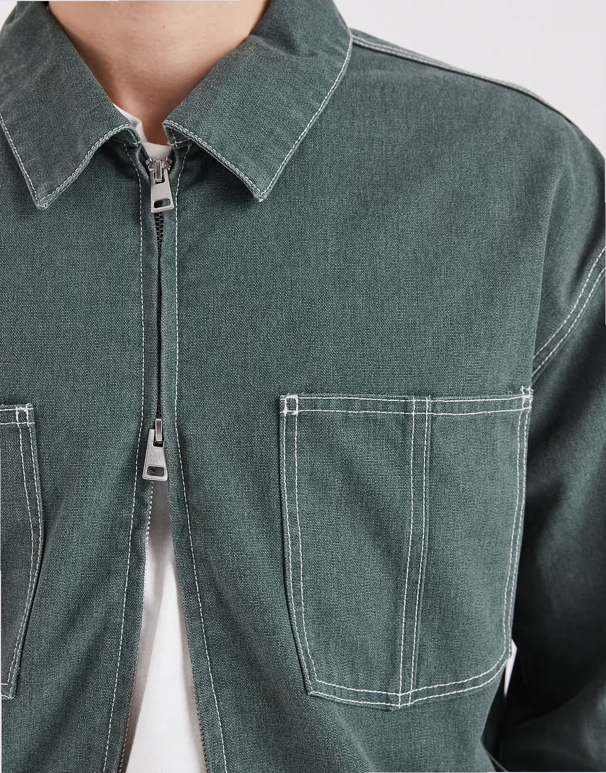 – Arbeitsjacke in Graugrün mit Kontrastnähten