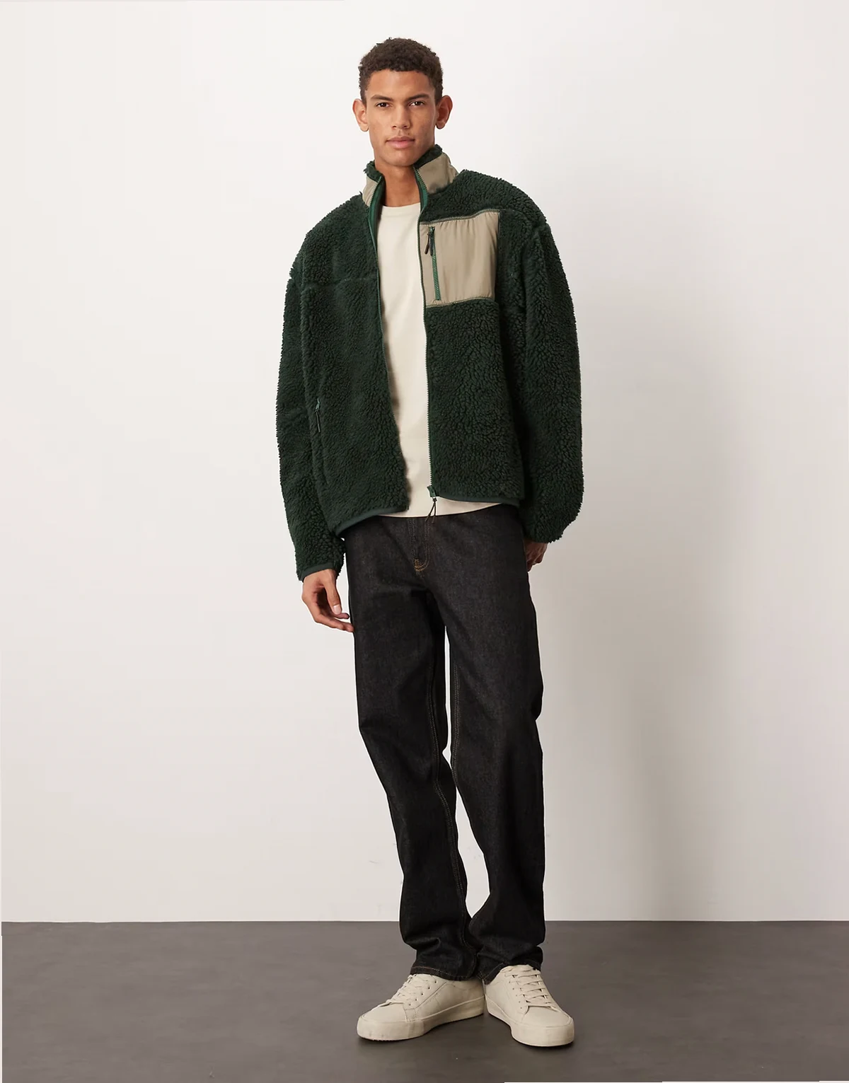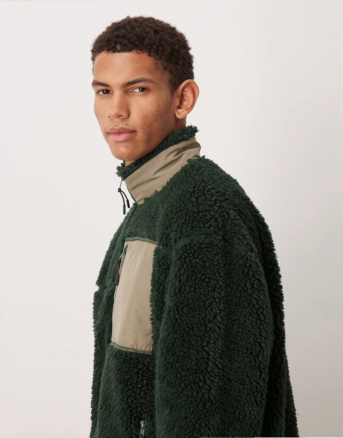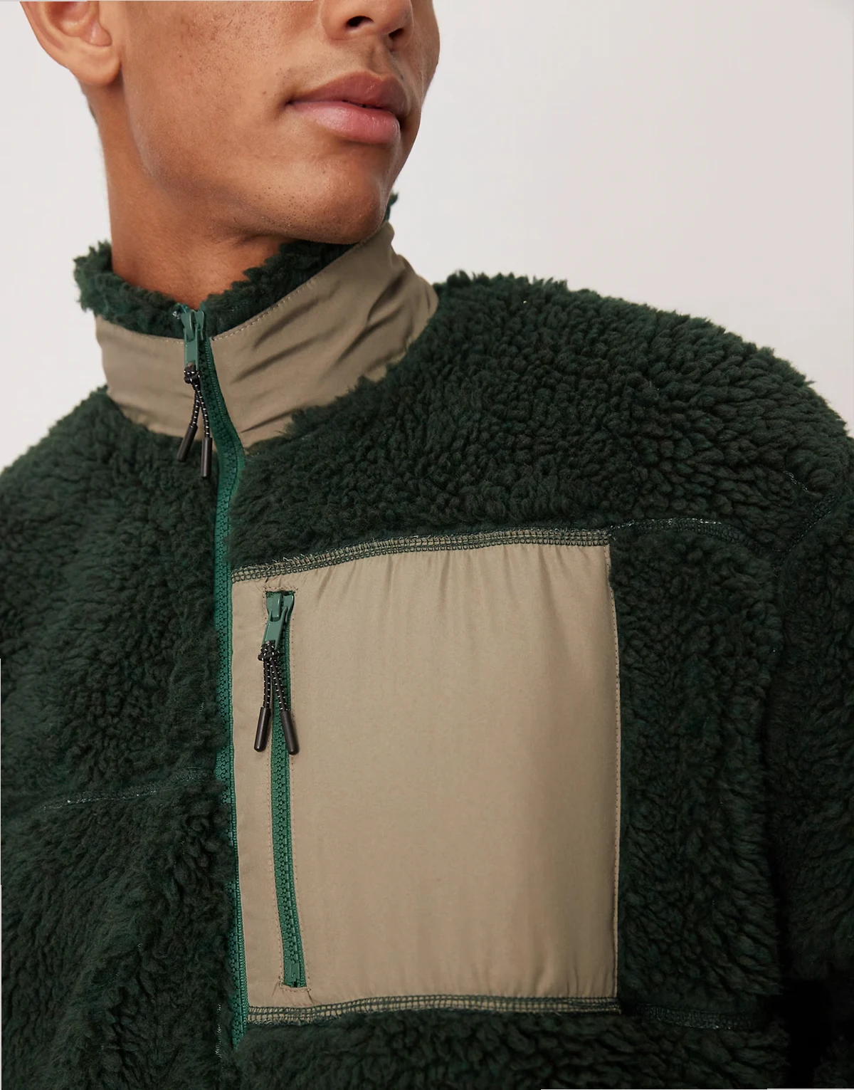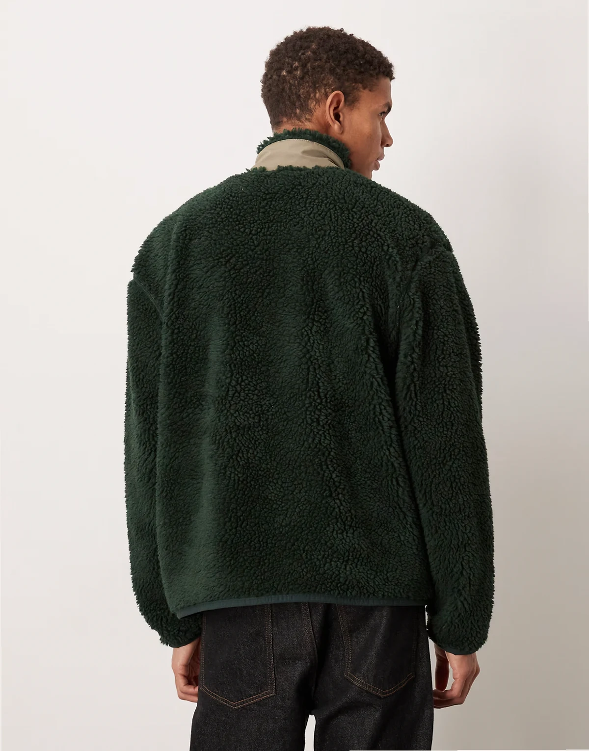 – Relaxed Fit-Jacke aus Teddyfell in Dunkelgrün mit Reißverschluss und Tasche