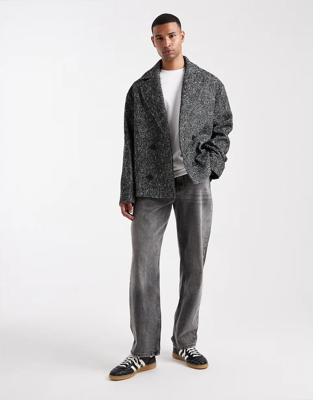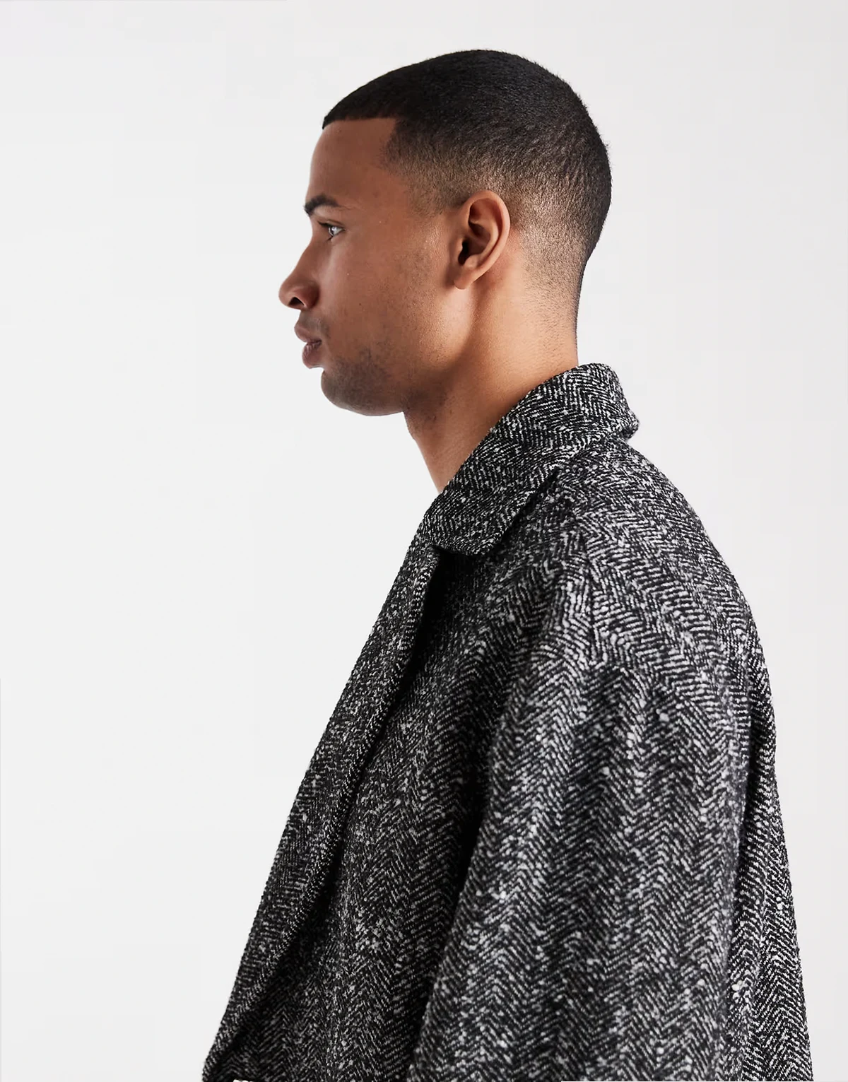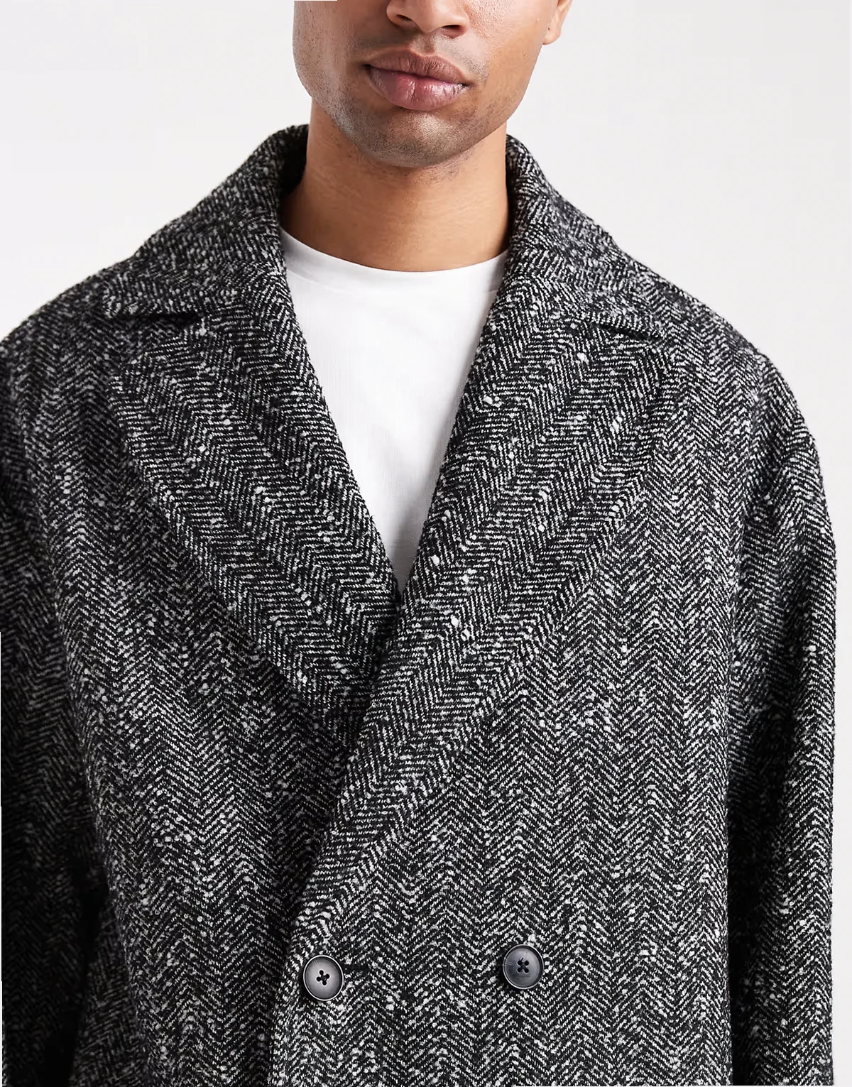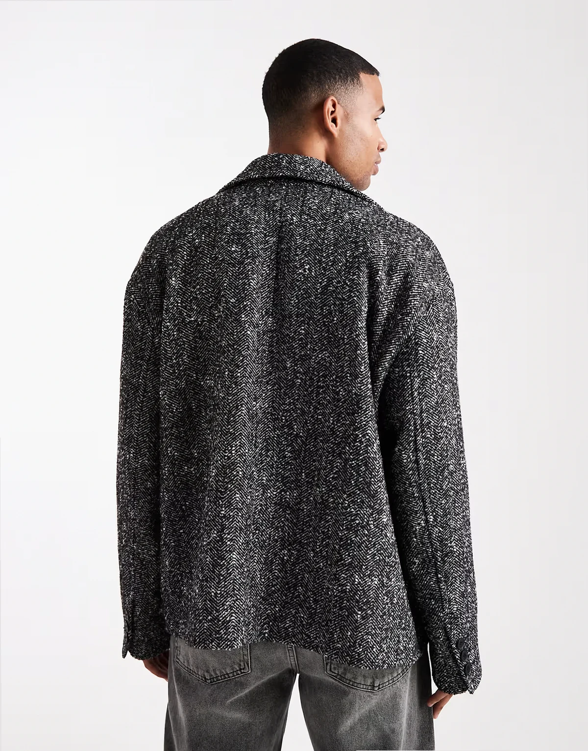 – Cabanjacke in schwarzer Wolloptik mit Fischgrätmuster