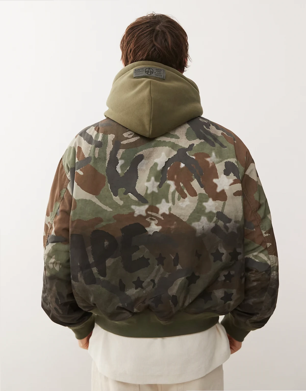 Aape by A Bathing Ape – Bomberjacke aus schwerem Material mit dunklem Military-Muster und Kapuze