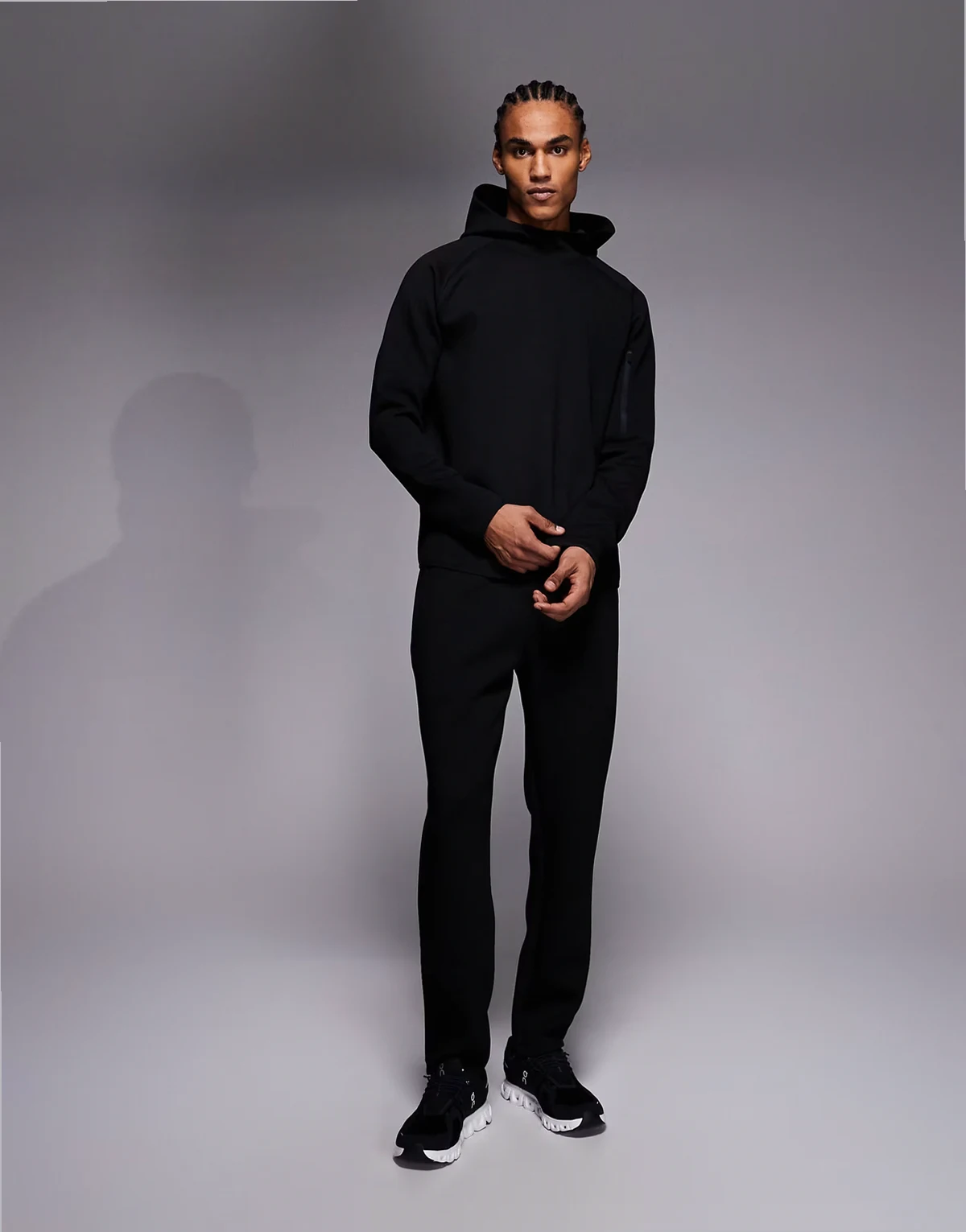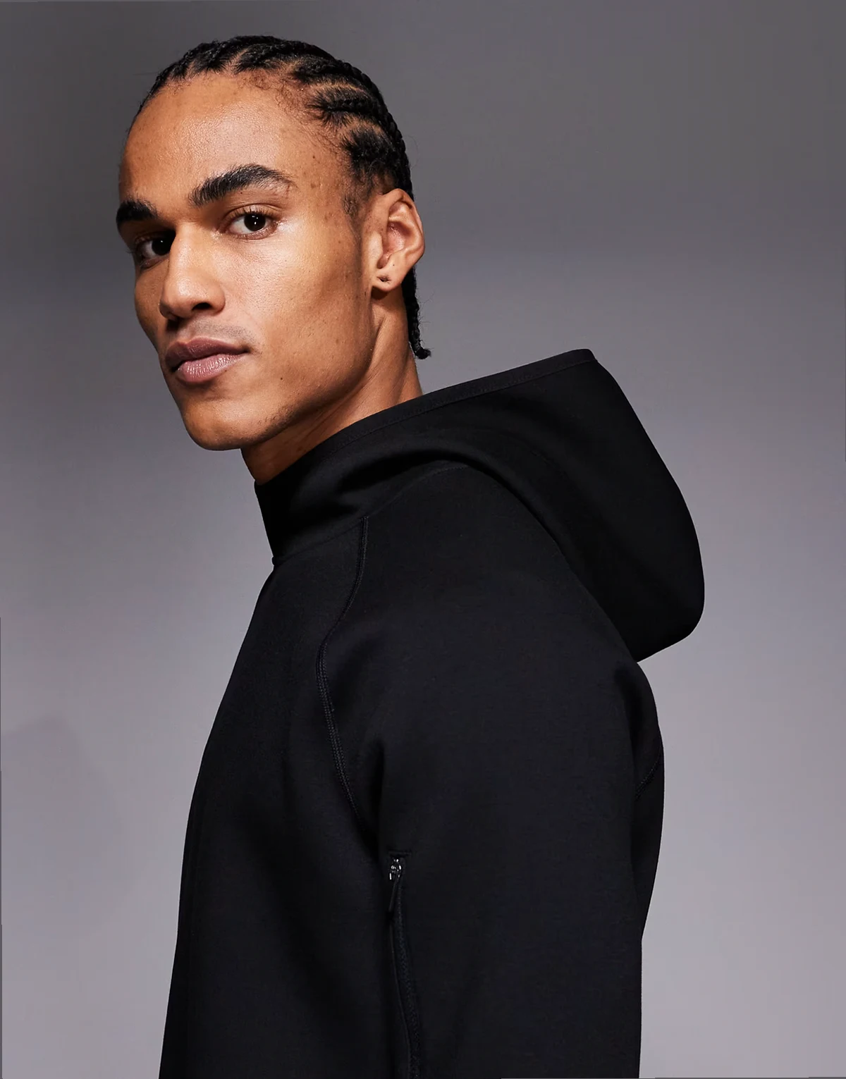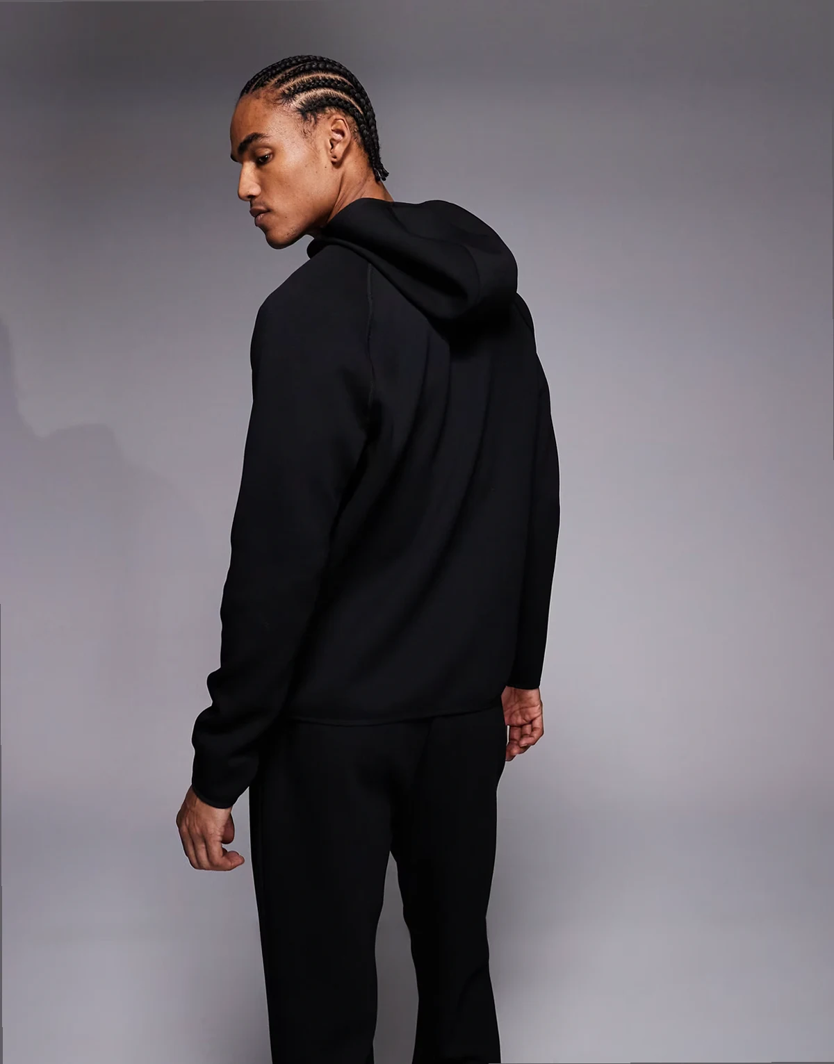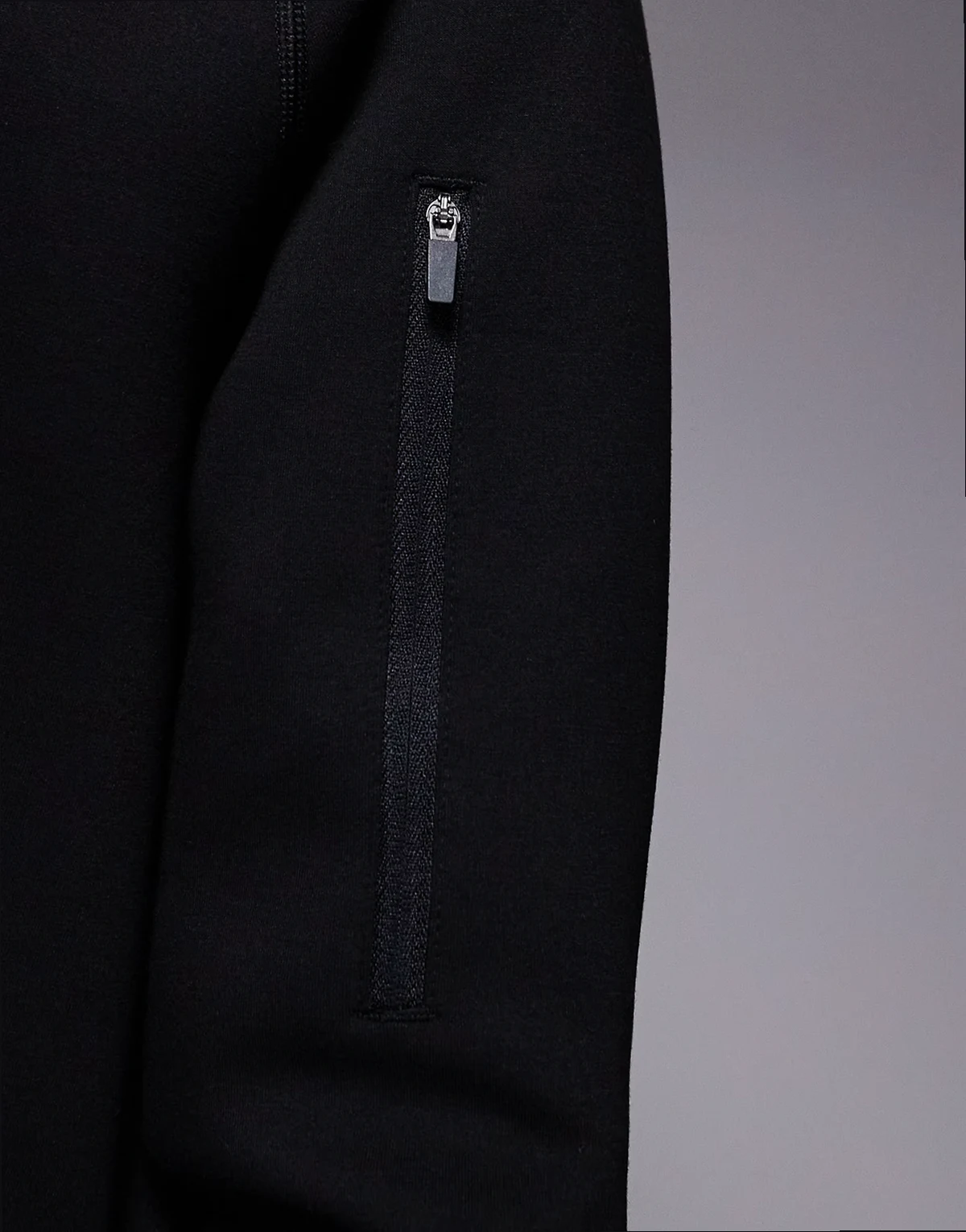 – Sport-Kapuzenpullover aus Material in Neoprenoptik in Schwarz mit Reißverschlusstasche