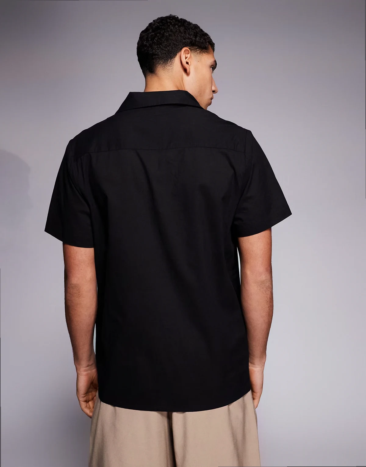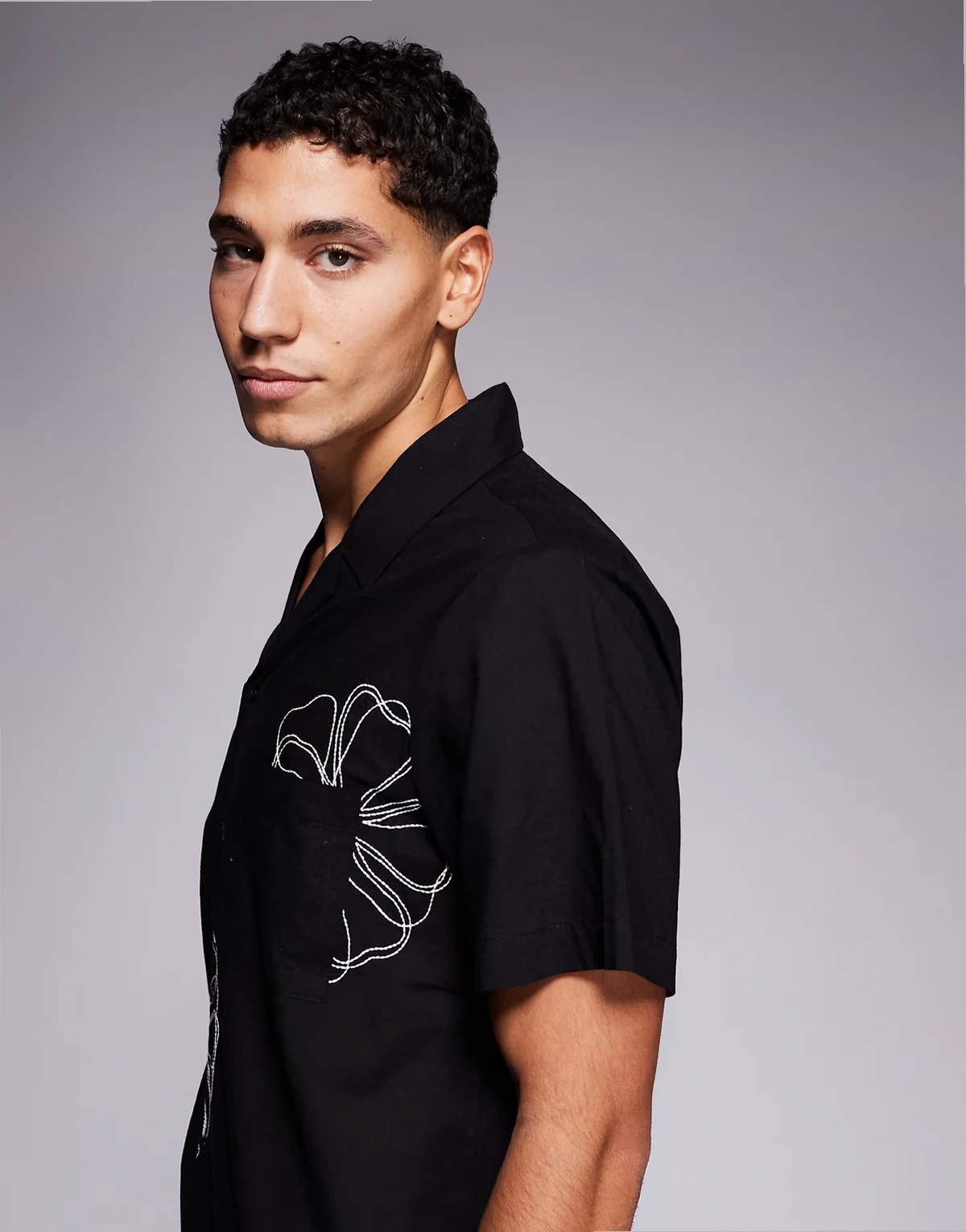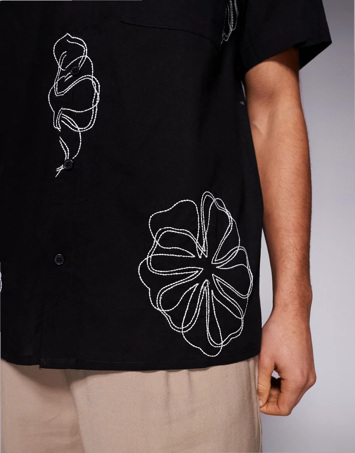 – Hemd in Schwarz mit Reverskragen und Stickereien
