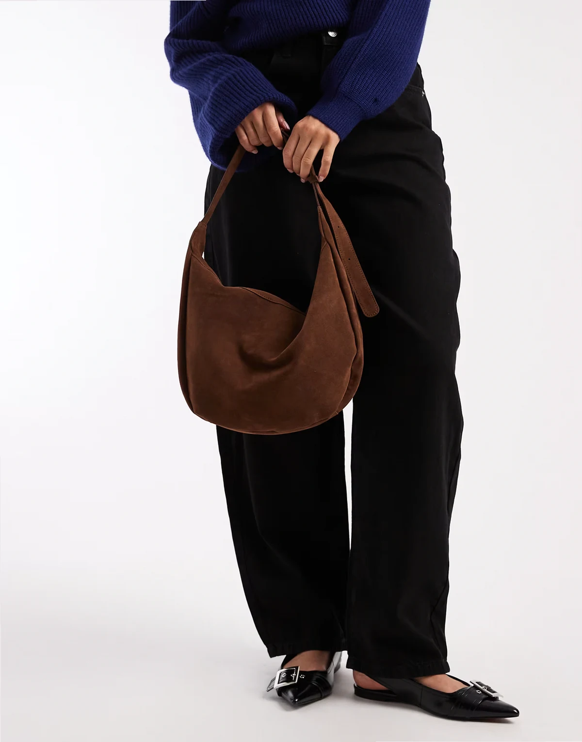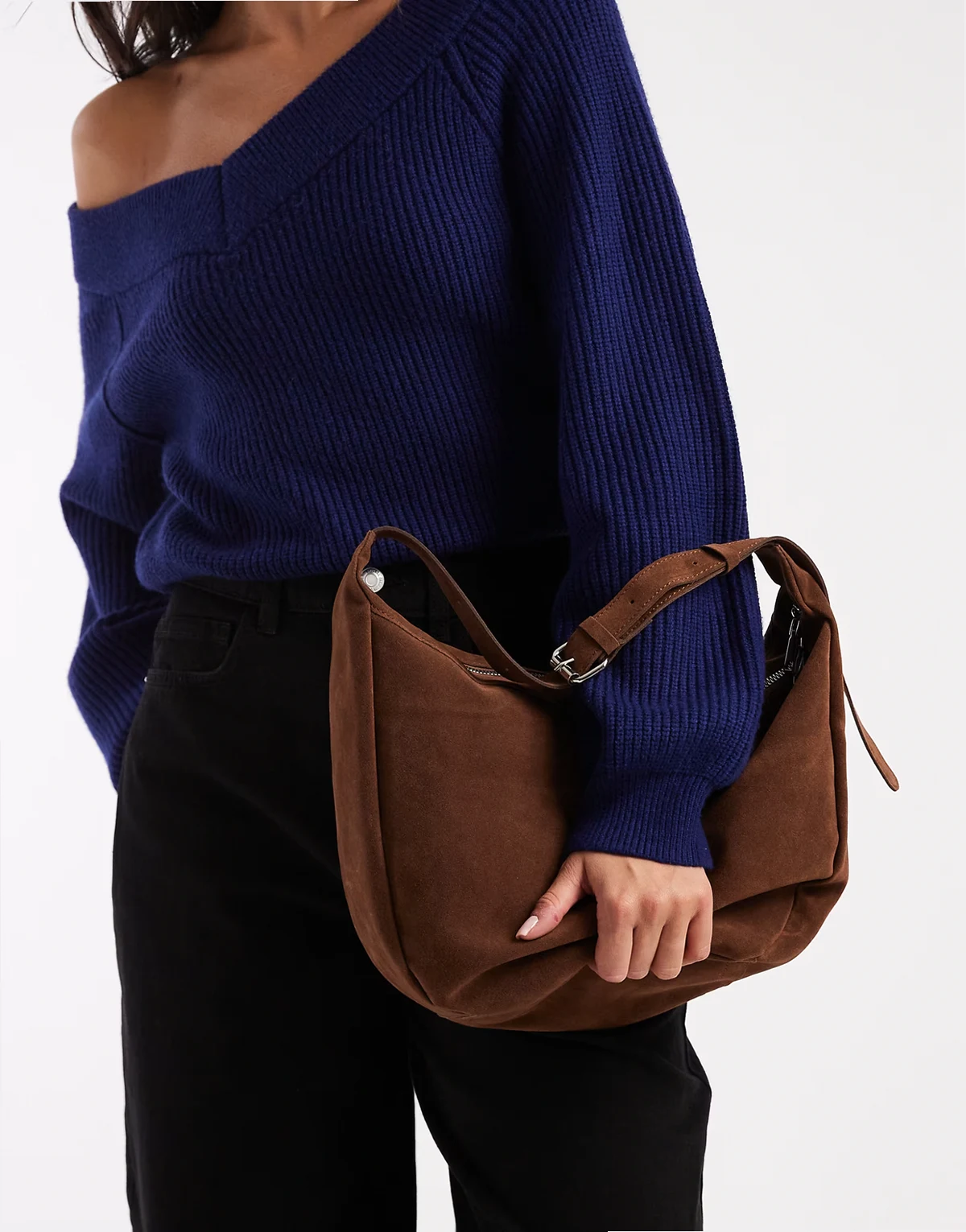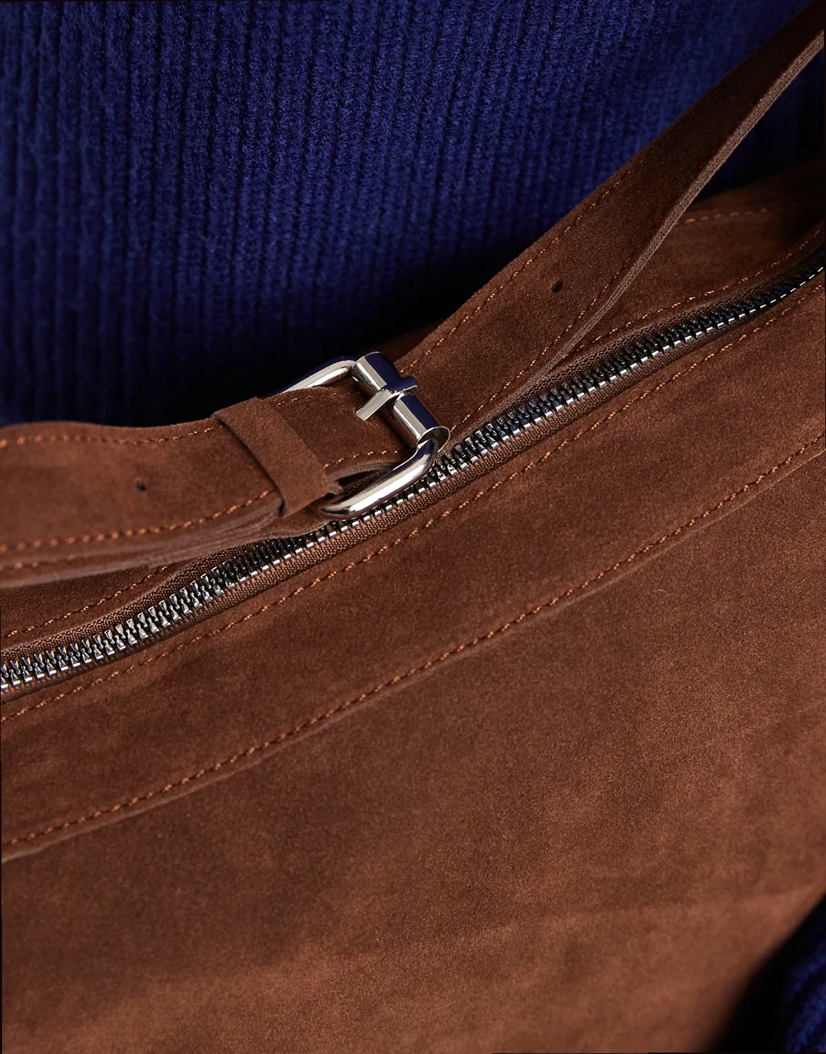 – Lässige Schultertasche aus Wildlederimitat in Braun