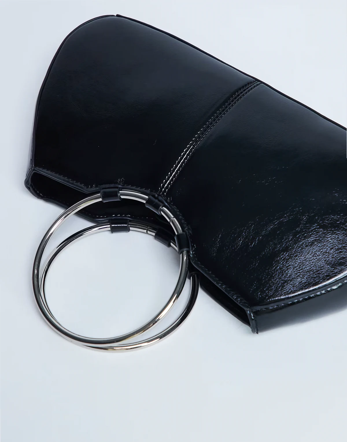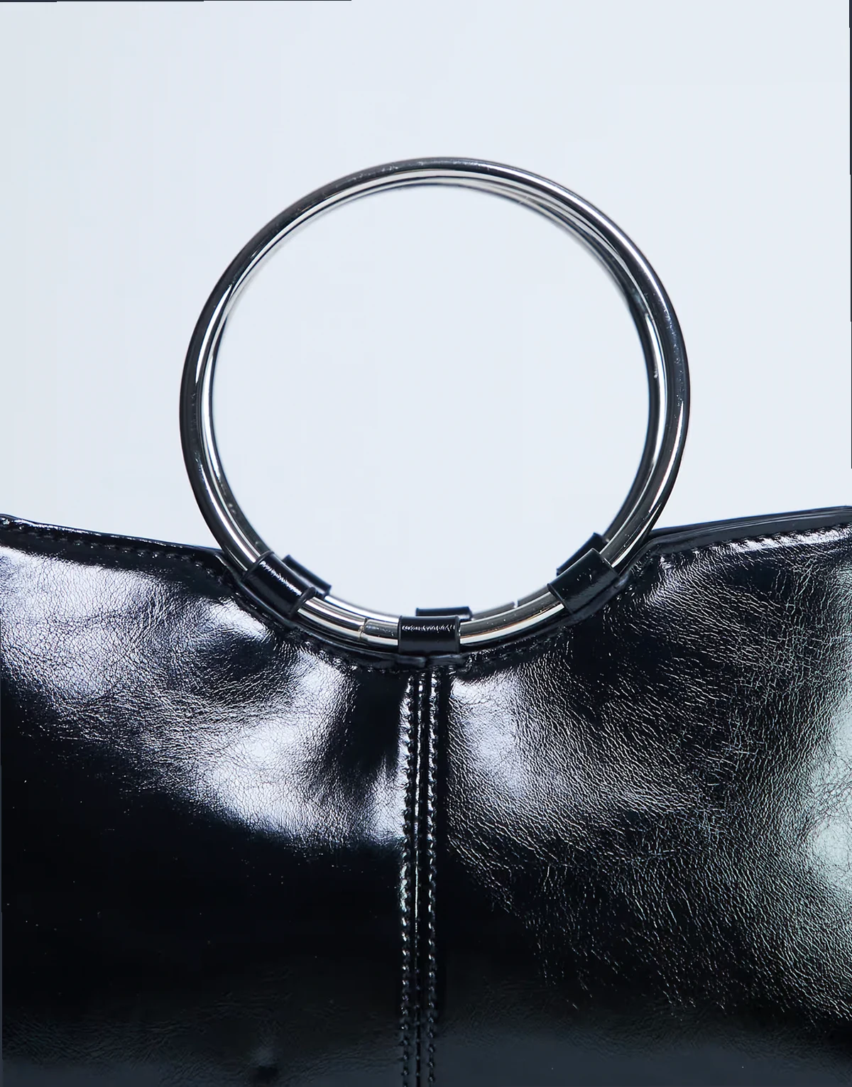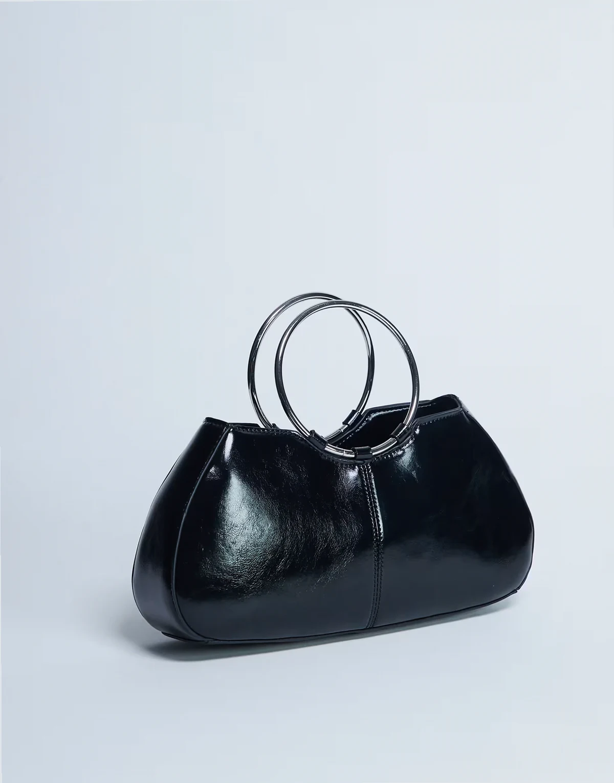 Diese Griffith Tasche bietet ein glattes, mattes Finish. Sie verfügt über zwei silberfarbene, ringförmige Griffe und einen Magnetverschluss.