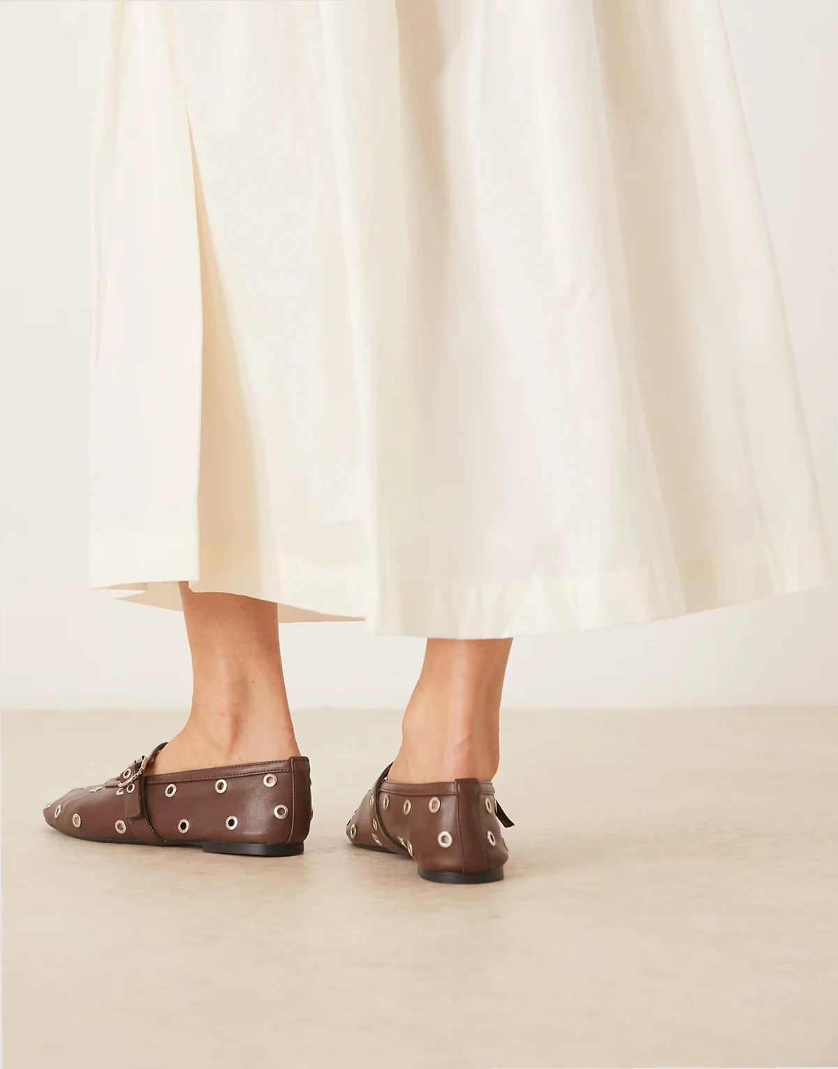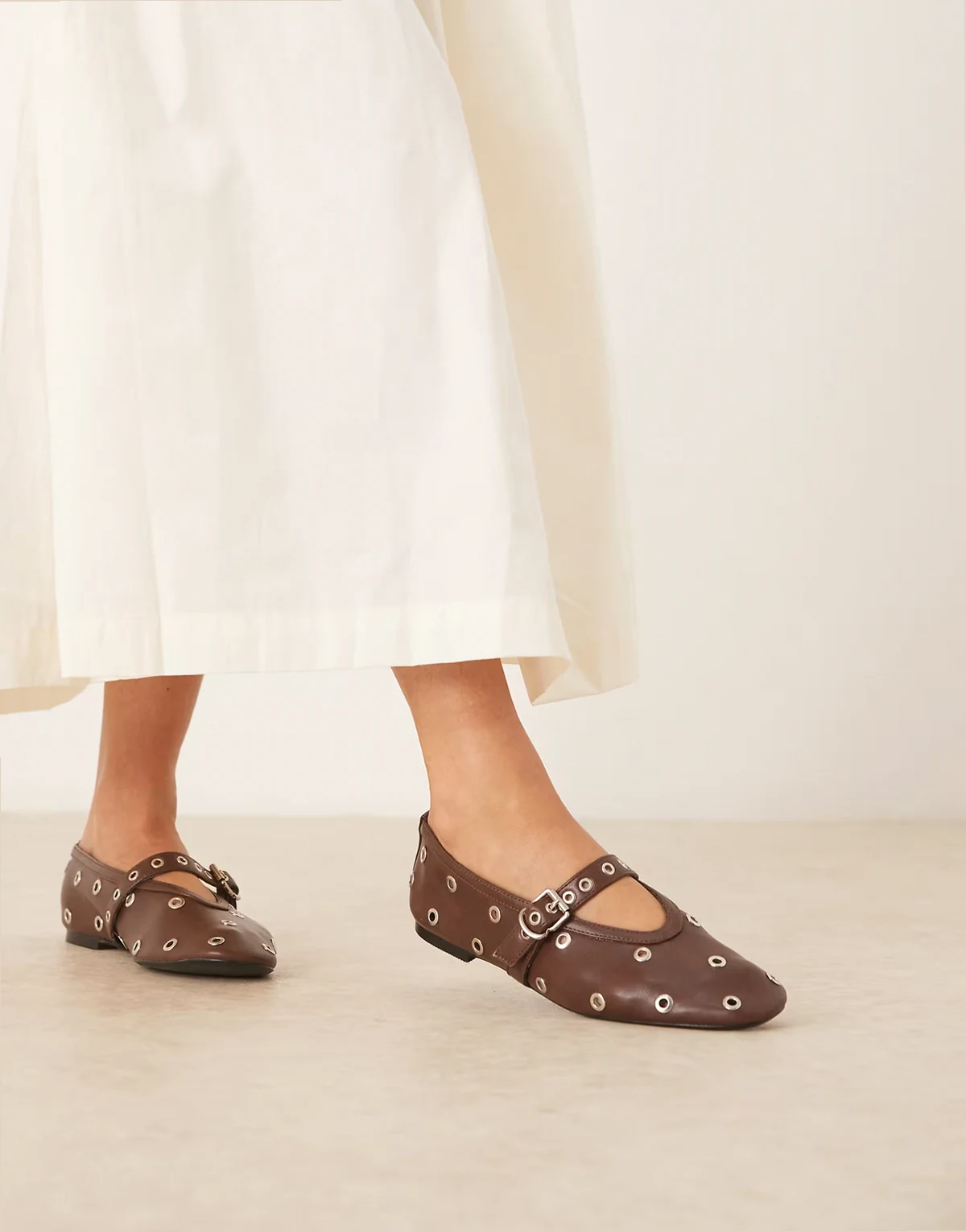– Ballerinas in Braun mit Schnallenriemen und Ösendesign