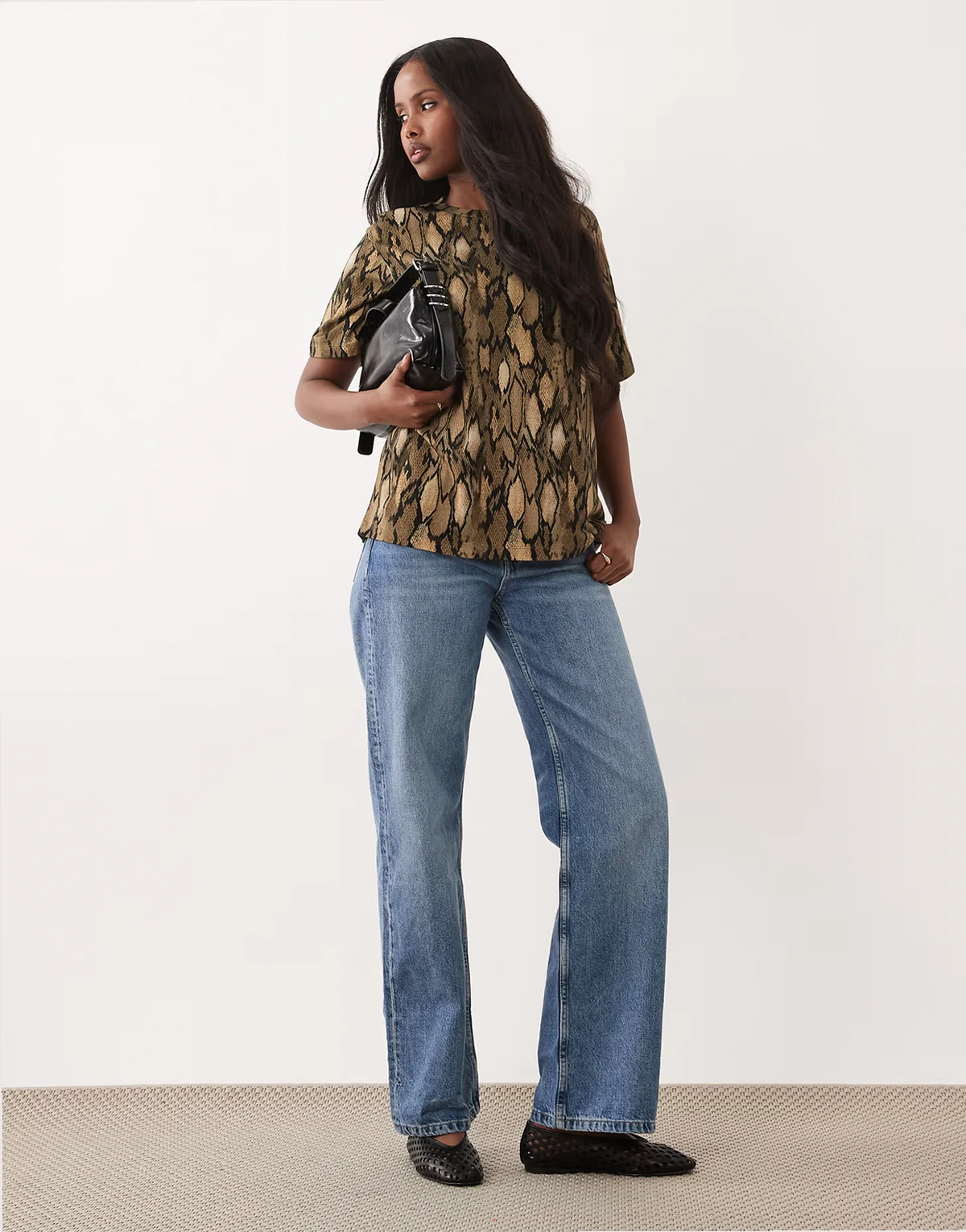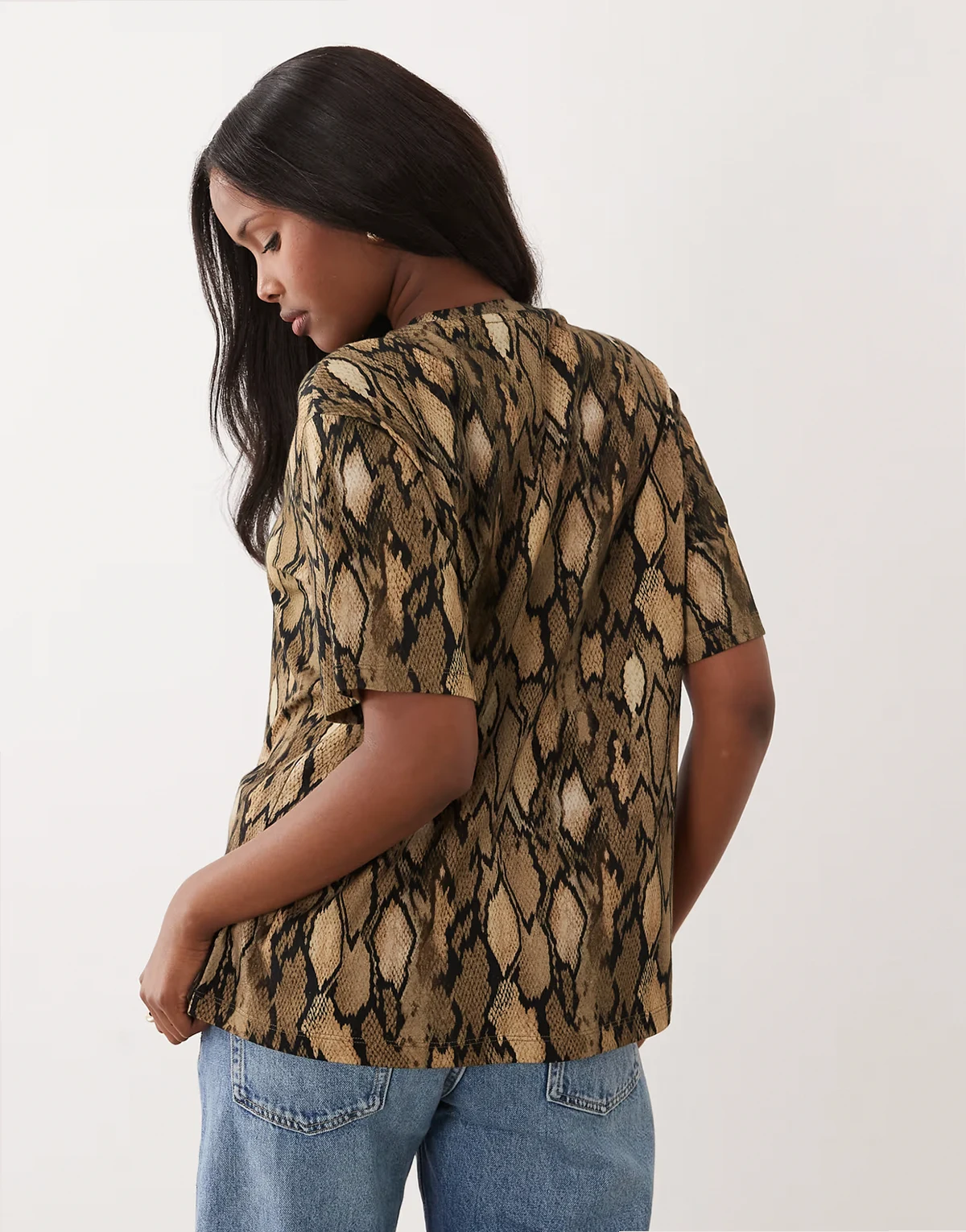 – Gesmoktes Oberteil in gestreiftem Braun mit Puffärmeln