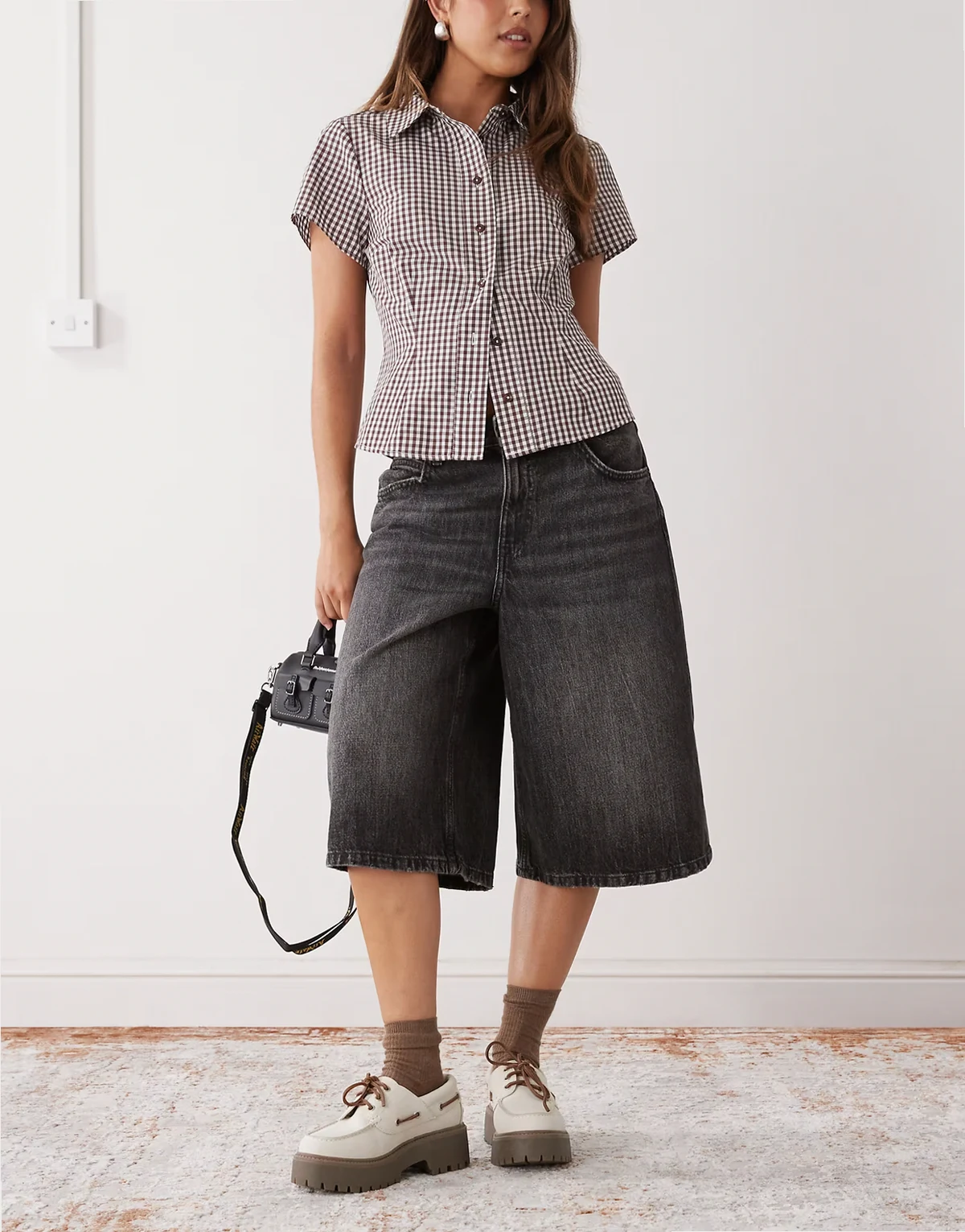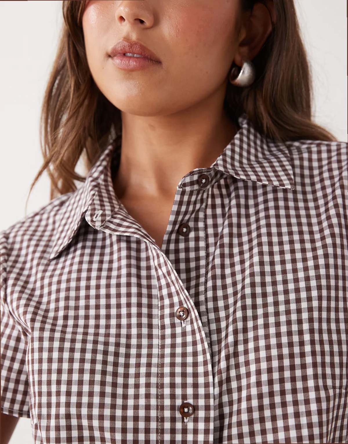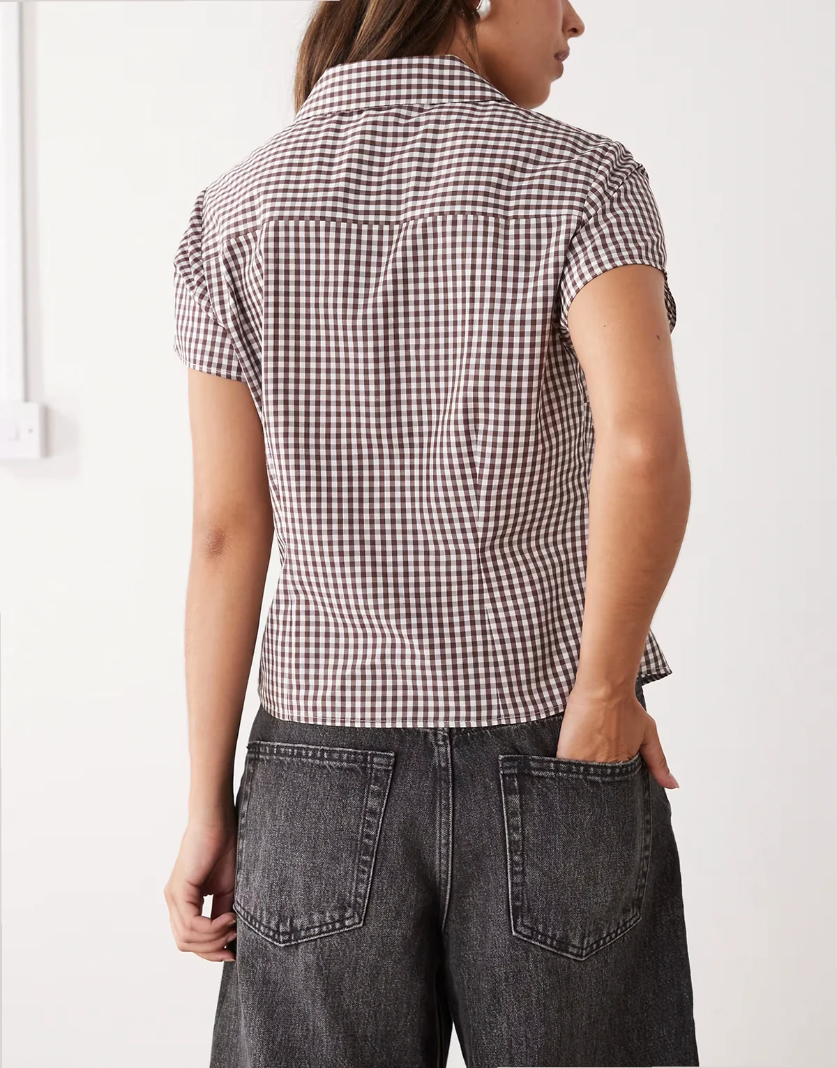 – Kurzärmliges, figurbetontes Hemd in Burgunderrot mit Vichy-Karos