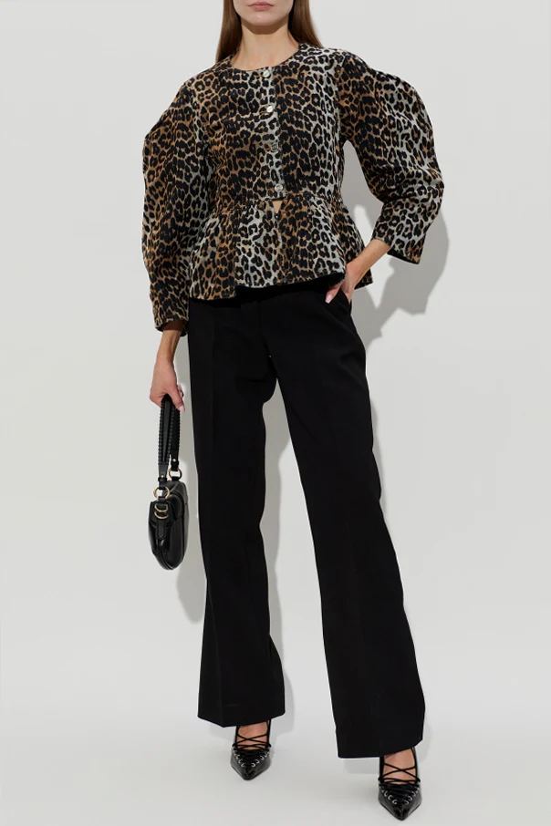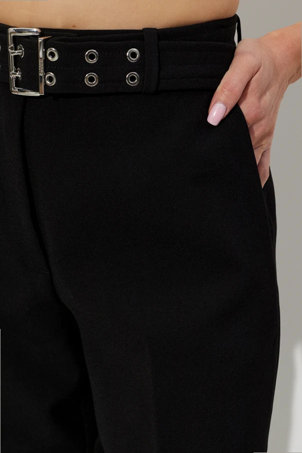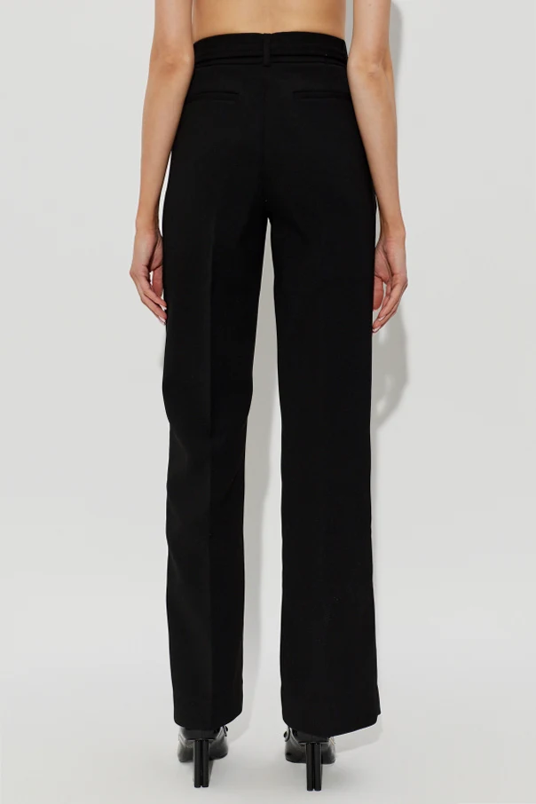 Hosen mit Bügelfalte und Gürtel des renommierten Hauses Ganni verkörpern die Quintessenz raffinierter Eleganz und moderner Klassik. Das Modell besticht durch eine ausgewogene Straight-Leg-Silhouette und eine markante Bügelfalte entlang der gesamten Beinlänge, die den formellen Charakter des Schnitts unterstreicht. Die hohe Taille, harmonisch betont durch einen breiten Gürtel mit Metallösen und dekorativer Schnalle, streckt die Silhouette dezent und verleiht dem Gesamtbild Ausdrucksstärke.