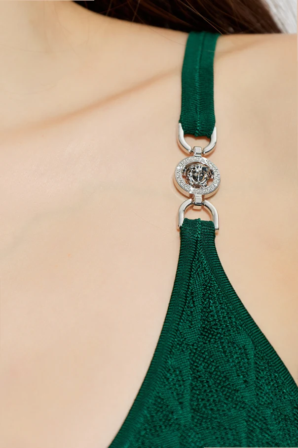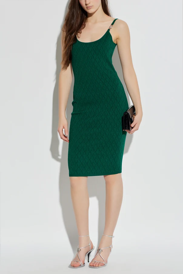 Das Trägerkleid von Versace ist eine außergewöhnliche Verbindung aus klassischer Eleganz und mutiger Modernität. Gefertigt aus einem elastischen, edlen Viskose-Material, formt es die Silhouette dezent und hebt ihre Vorzüge durch den körpernahen Bodycon-Schnitt und die knielange Passform hervor.