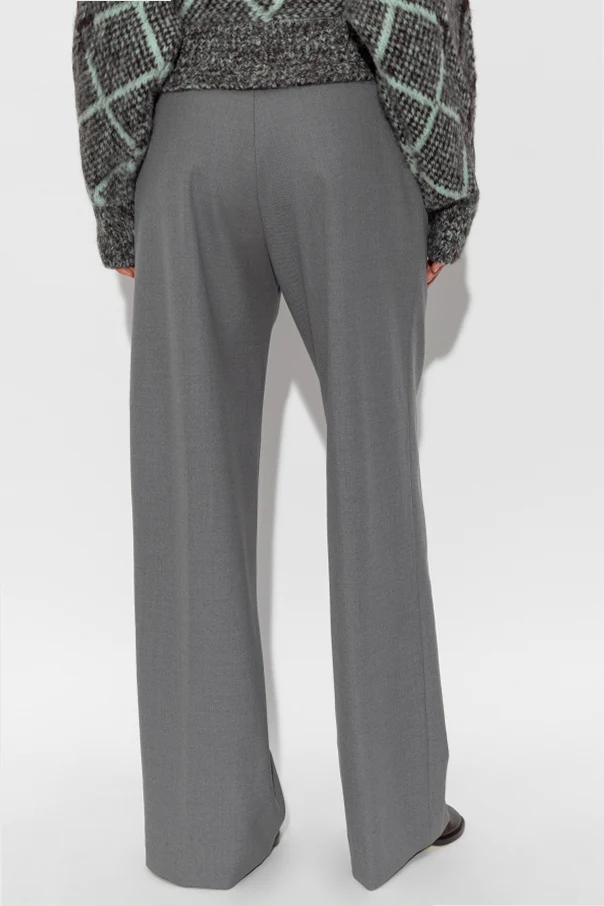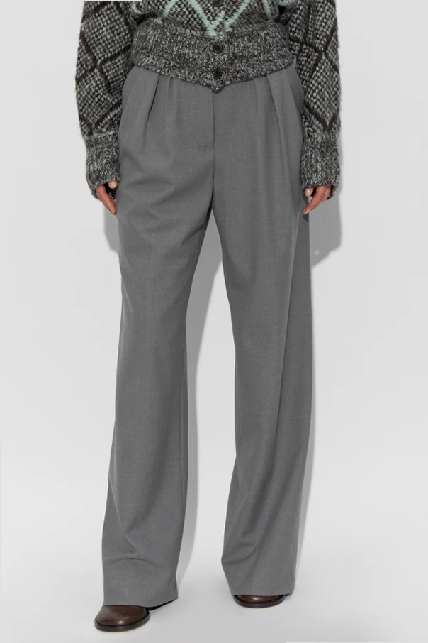 Graue Wollhose von Dries Van Noten verkörpert die Essenz moderner Eleganz. Der klassische Wide-Leg-Schnitt mit hoher Taille betont dezent die Silhouette, während die weiten Beine und die feinen Falten außergewöhnlichen Komfort und zeitlosen Chic bieten. Sorgfältig ausgewählter, glatter, luxuriöser Wollstoff mit matter Oberfläche strahlt jene Raffinesse aus, die für formelle, exklusive Modekreationen typisch ist.