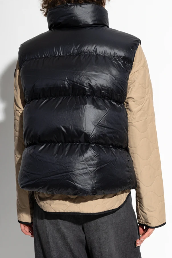 Wir präsentieren die exklusive Daunenweste Cypress von Canada Goose , die Quintessenz von Eleganz und Funktionalität. Diese außergewöhnliche Weste, gefertigt aus glänzendem, schwarzem Polyamid, bietet unvergleichliche Wärme und Leichtigkeit dank der Füllung aus Entendaunen. Ihr kurzer, gerader Schnitt endet auf Hüfthöhe, und der hohe Kragen bietet zusätzlichen Schutz vor Kälte.