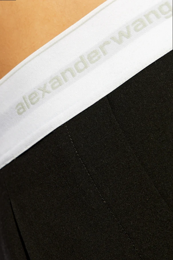 Ihr charakteristischer, gerader Schnitt mit deutlicher Bügelfalte, akzentuiert durch einen hohen Bund mit einem breiten, weißen Gürtel in der Taille, komplettiert das prestigeträchtige Image. Bemerkenswert ist der elastische Bund in der Taille, verziert mit dem weißen Logo von Alexander Wang , was nicht nur die Zugehörigkeit zur exklusiven Designerlinie unterstreicht, sondern auch zusätzlichen Komfort und eine optimale Passform bietet.