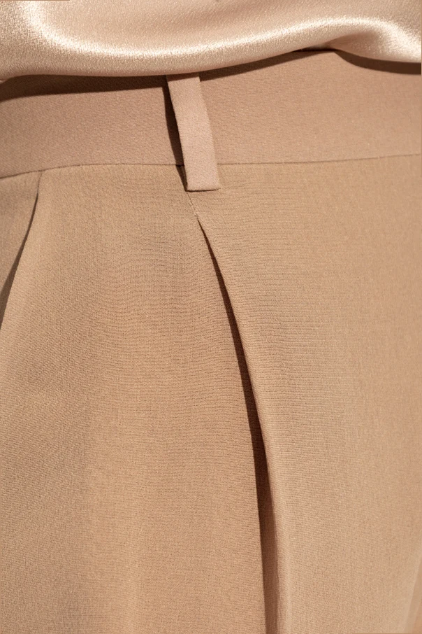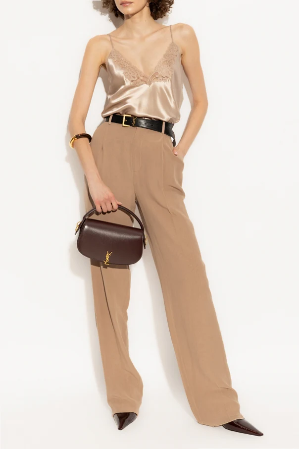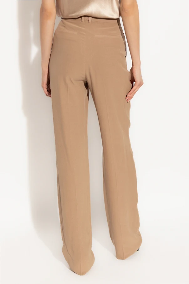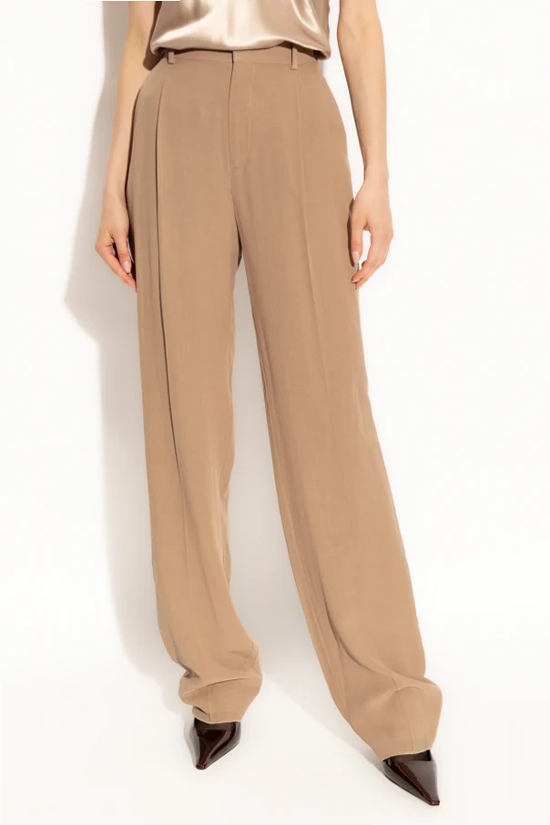 Wir präsentieren Seidenhosen mit Bügelfalte vom renommierten Modehaus Saint Laurent. Diese beigen Hosen sind die Quintessenz von Eleganz und Luxus, ideal für Frauen, die klassischen Stil und höchste Qualität schätzen.
