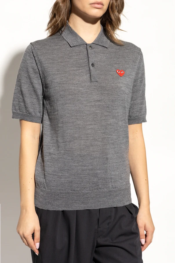 Das Polo zeichnet sich durch ein glattes, einheitliches Muster ohne zusätzliche Verzierungen aus, abgesehen von dem dezenten Logo. Auf der linken Brustseite befindet sich ein charakteristischer Aufnäher mit einem roten Herz mit Augen, dem Markenzeichen von Comme des Garçons Play.