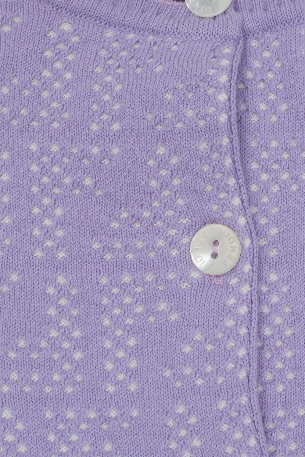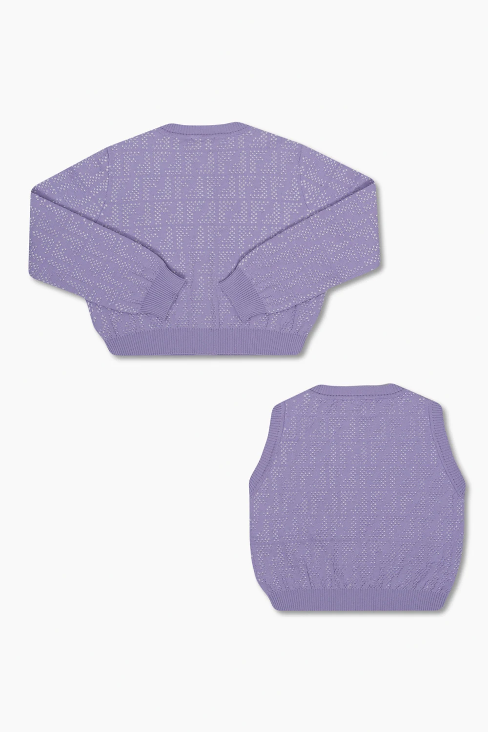 Purple apparel set from Fendi Kids. Made of cotton, it includes a vest and cardigan and showcases monogram embossing. The cardigan features a round neck, button fastenings, and long sleeves. The vest has a round neck.