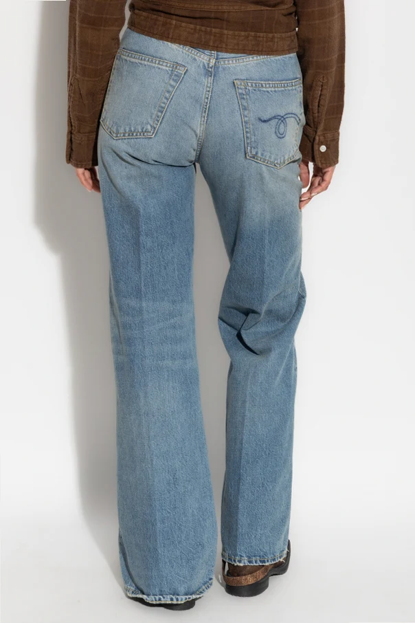 Discover refinement in its purest form with these women's bootcut jeans by R13 , a label renowned for reimagining rock-inspired silhouettes with irreverent sophistication. Impeccably tailored from rigid, non-stretch denim, these jeans feature a classic high-rise waist and gently flared legs, artfully designed to elongate the silhouette and exude modern elegance with a touch of vintage allure.