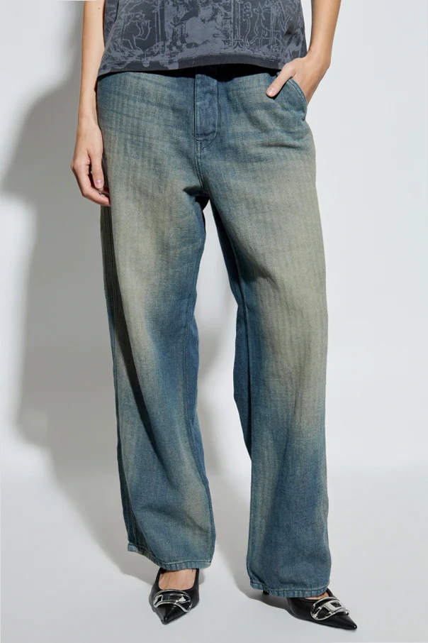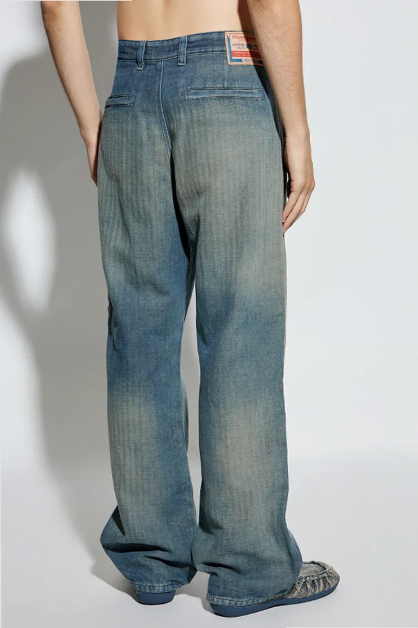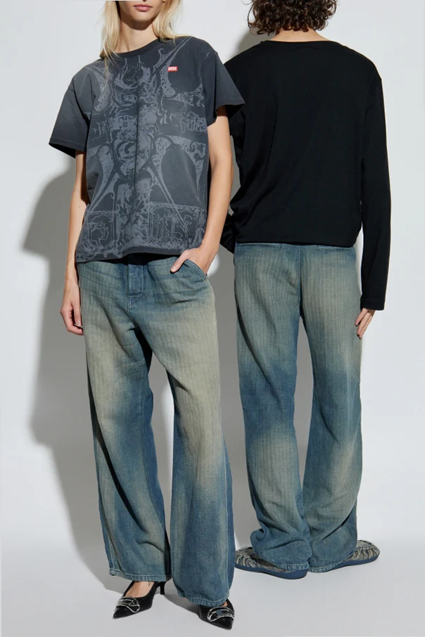 Elevate your wardrobe with the D-PHANT-CHINO Jeans by Diesel —a striking union of artistry and heritage. Crafted from a premium denim blend of cotton and linen, these unisex jeans embody contemporary sophistication through their structured, non-stretch fabric and signature tactile weave. The wide leg silhouette , with either a high or mid-rise waist, offers effortless elegance, cascading gracefully over your shoes or skimming the ankles.