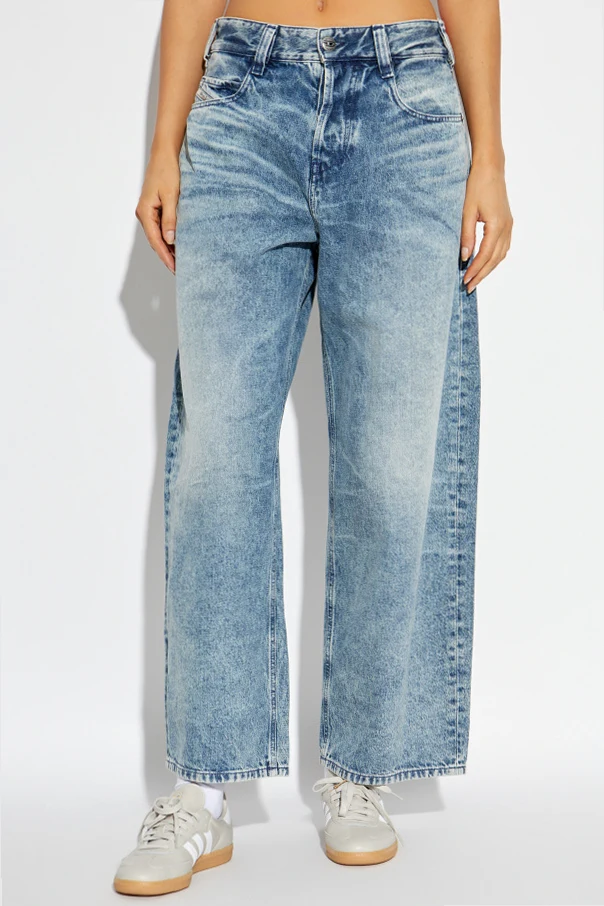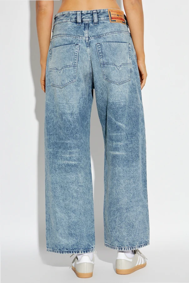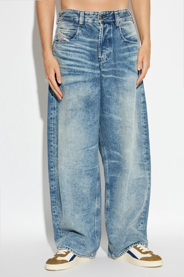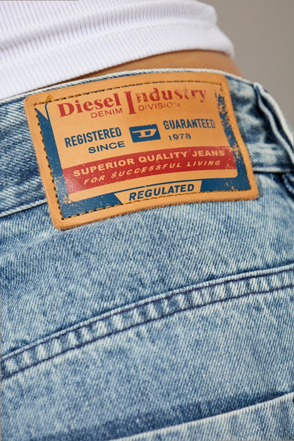 Embodying a spirit of bold sophistication, the D-ENIM-M-FSH jeans from Diesel showcase a striking wide-leg silhouette with a high-rise profile, expertly tailored from soft stretch denim. Their refined, light blue hue is subtly elevated by artful fading and gentle whiskering at the thighs, knees, and seat, lending these jeans an authentic vintage aesthetic while ensuring modern comfort. Crafted from premium quality denim, each pair is distinguished by a signature leather patch emblazoned with the “Diesel Industry Denim Division” insignia, complete with exclusive numeration and iconic brand mottos—an unmistakable mark of Diesel's heritage and craftsmanship. The subtle red tag at the waist asserts their unique identity in the realm of luxury menswear. Why choose this product? Unparalleled comfort thanks to expertly engineered stretch fabric Contemporary wide-leg fit with a timeless, vintage-inspired wash Distinctive branding and artisanal attention to detail A legacy of Italian design excellence, synonymous with Diesel