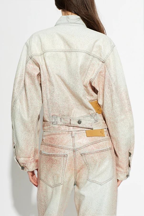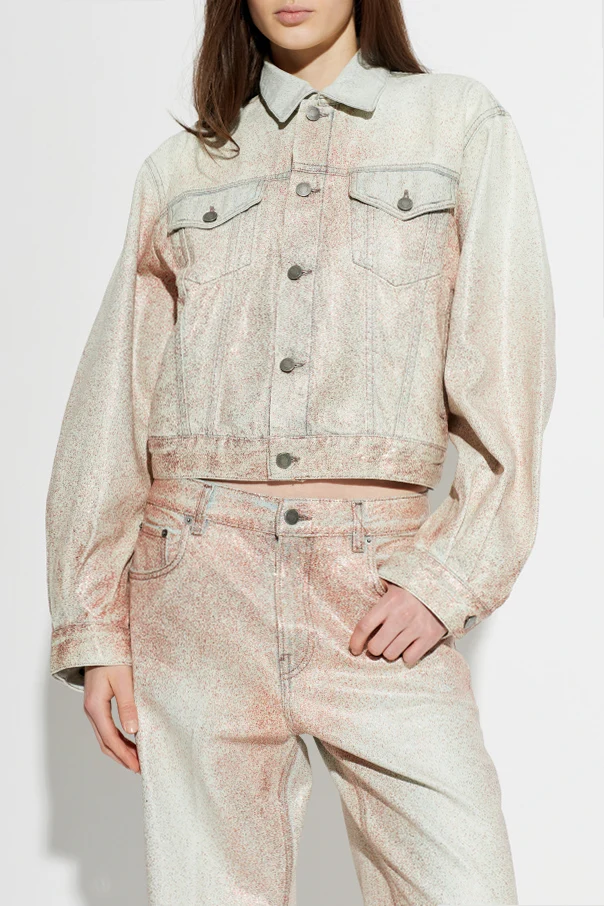 Crafted from premium denim, the jacket captivates with its delicately flecked, multidimensional finish—an artful mist of soft rose and tawny undertones. The lofty fabric structure offers both substance and a luxurious hand feel, distinguishing it from traditional denim.