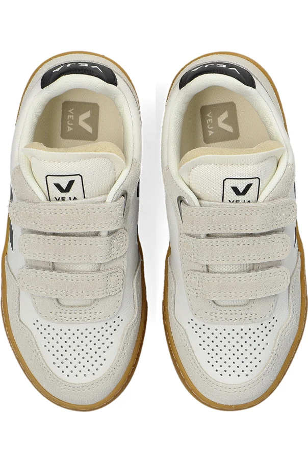 Perforated detailing at the toe allows for superior breathability, while the signature black V side emblem and contrasting caramel rubber outsole exude unmistakable brand elegance. The striking VEJA logo is gracefully positioned on both the heel and tongue, celebrating the label’s commitment to environmental integrity and refined craftsmanship. Perfect for young trendsetters learning the value of conscious fashion.