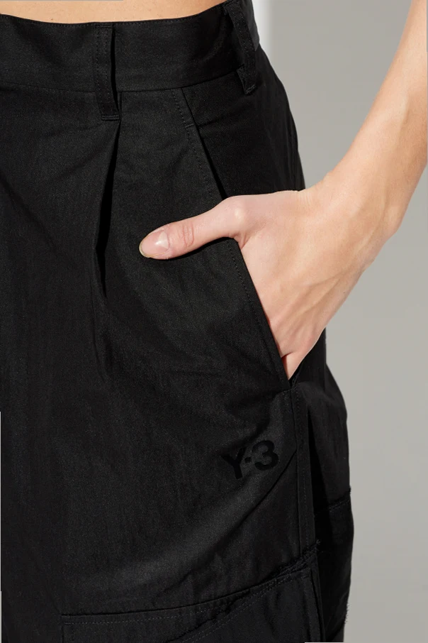 Elevate your wardrobe with these Black Cargo Trousers from the visionary collaboration of Y-3, where avant-garde aesthetics meet refined sportswear. Meticulously crafted from a matte, robust technical fabric blend, these trousers offer a relaxed, wide-leg silhouette, complemented by a high-rise waist and classic zip-and-button closure for an elegant, elongated fit.