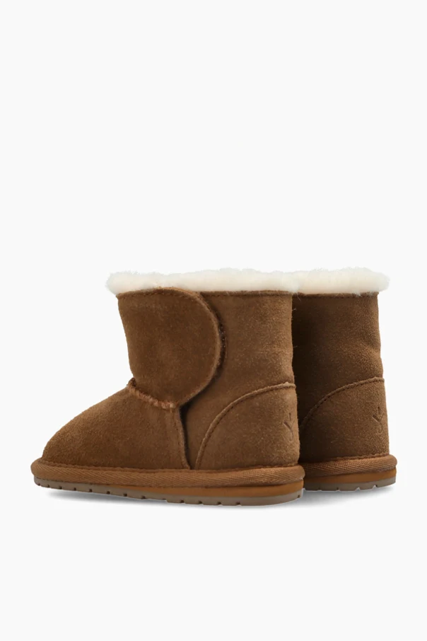 Introducing the "Toddle" boot by EMU Australia Kids—a refined addition to any child's cold-weather wardrobe. This elegant winter boot is expertly fashioned from sumptuously soft brown suede, enveloping little feet in rich, natural warmth. The plush, thick wool interior provides an indulgent cocoon, ensuring comfort and insulation during chilly days, while the sturdy rubber sole offers assured grip and durability.