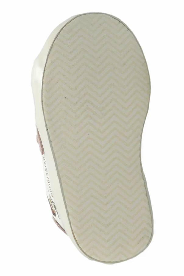 The plush, rounded toe offers enduring comfort, while the sturdy, flat rubber sole ensures stability for little explorers. The lateral side is adorned with a bold star motif and character graphic, complemented by the exclusive “GGDB/SSTAR” insignia—a true hallmark of refinement. Dual wide hook-and-loop straps provide a secure, customized fit, making them as practical as they are stylish.