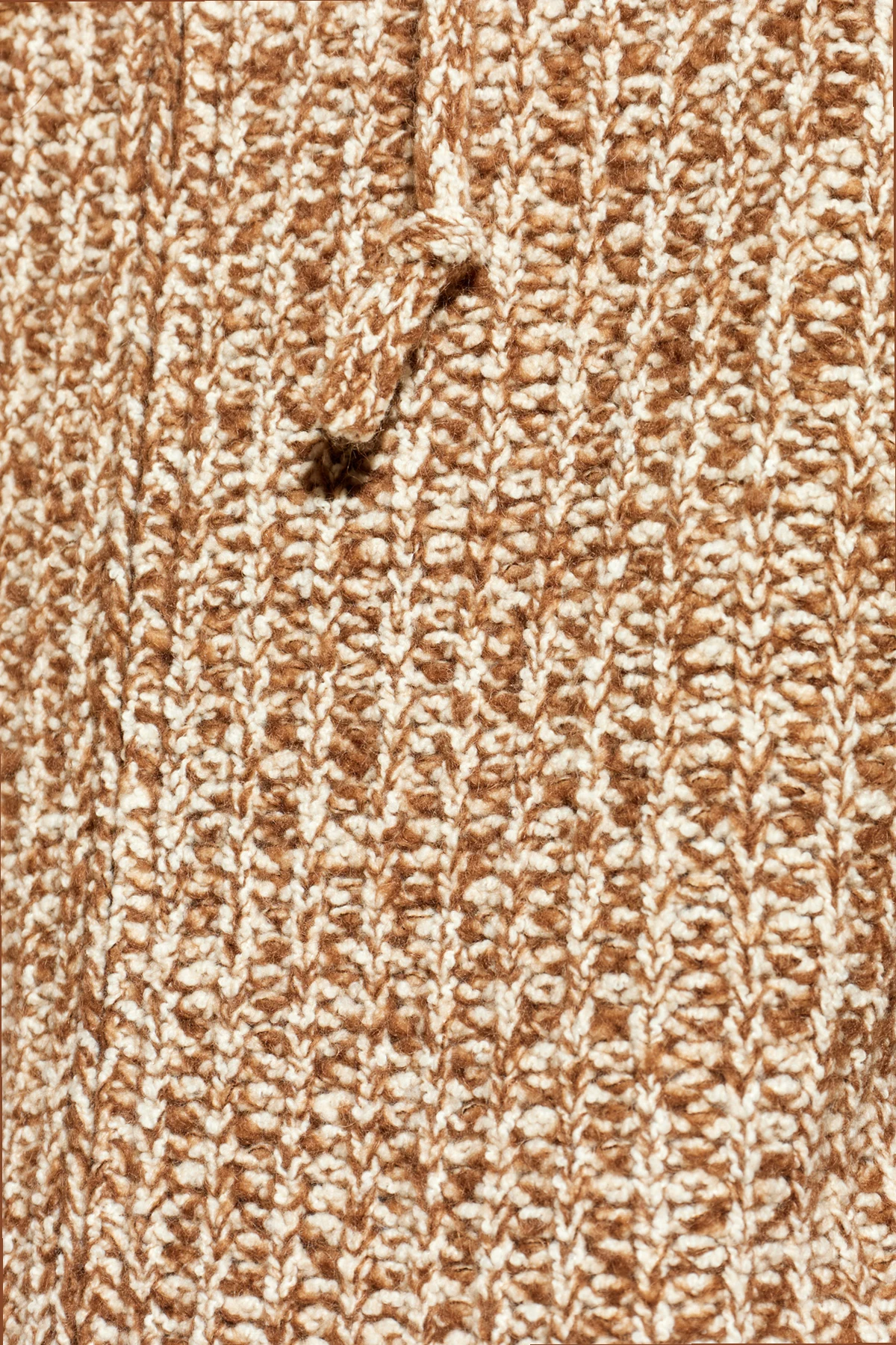 Elevate your wardrobe with the Iker Cardigan by Marant, an embodiment of understated sophistication. This classic, slightly oversized silhouette is meticulously crafted from a sumptuously thick knit, blending the comforting warmth of wool with the refinement of premium synthetic fibers. Its distinctive beige mélange pattern interweaves lighter and darker threads, bestowing a unique, textured allure reminiscent of natural landscapes. Thoughtful minimalism defines every detail—from the streamlined hood with adjustable drawstrings and broad ribbing, to the front zipper accented by a subtle leather patch. Free of overt logos or prints, the Iker Cardigan seamlessly marries versatility with a whisper of modern edge for those who appreciate quiet, enduring luxury. Why choose this product? Artfully crafted beige mélange knit for a one-of-a-kind textured appearance Premium material blend assures comfort, structure, and longevity Modern oversize silhouette with a hood and refined leather zipper detail Effortless minimalism complements both casual and elevated ensembles