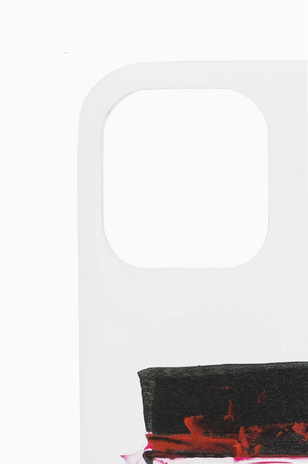 White iPhone 12 case from Off-White. Designed to guard your smartphone, this item showcases a black and pink logo pattern.