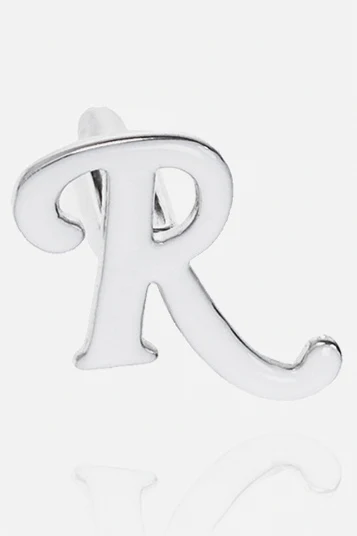 Silver-tone cufflinks from Raf Simons. Made of brass with a logo shape, they are finished with white enamel.