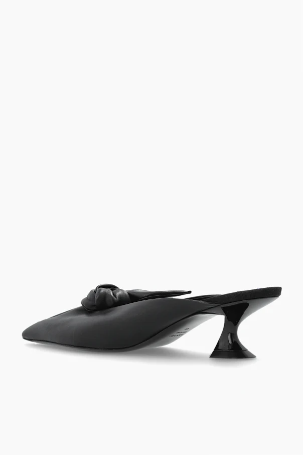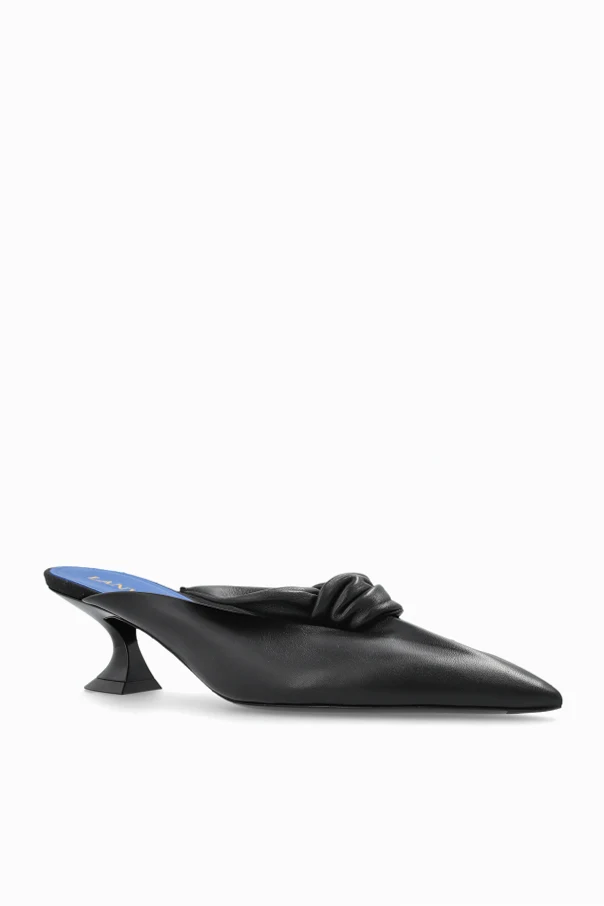Experience a new dimension of sophistication with these black leather turtleneck pumps by Lanvin . Defined by their sharply pointed toe, these mid-heel mules exude bold, modern elegance. The slip-on mule silhouette—open at the back—effortlessly balances avant-garde charm with refined design.