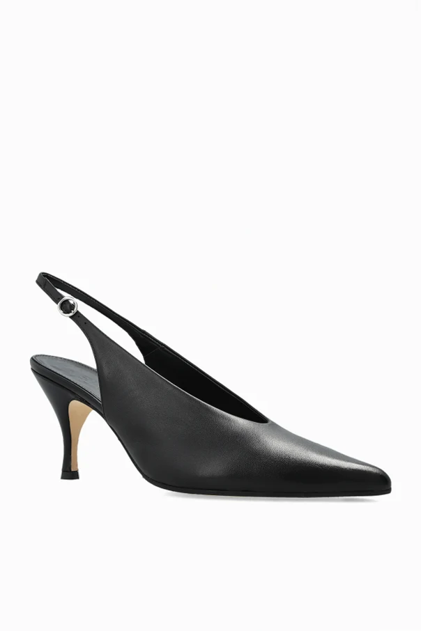 The ‘Carla’ leather slingback heels by Aeyde epitomize understated sophistication. Crafted from supple, high-quality leather, these shoes feature a distinctive elongated, pointed toe that enhances their statuesque silhouette. The smooth, minimalist surface—free from embellishments—accentuates the refined, monolithic character, while the slim stiletto heel offers both poise and comfort for any occasion.