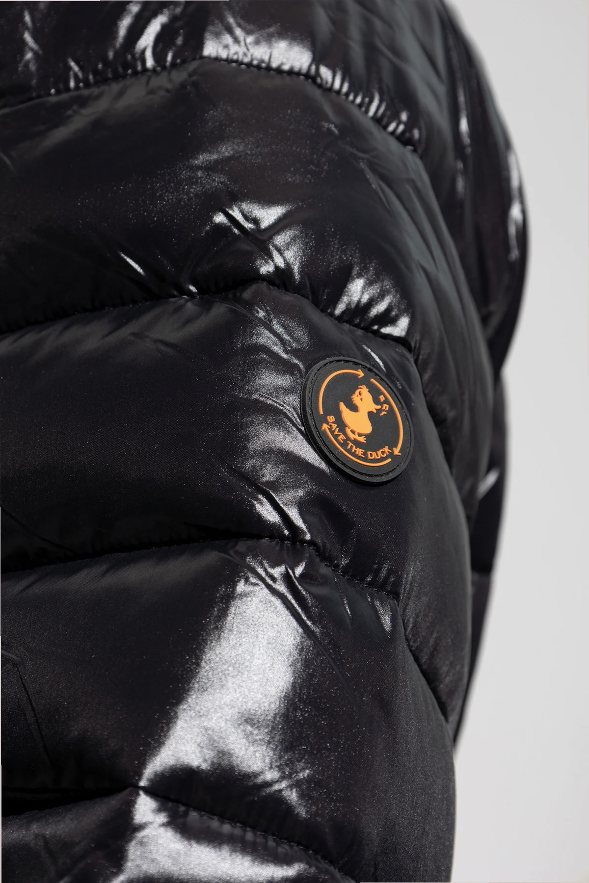 Introducing the exclusive ‘Holden’ Insulated Jacket from the esteemed Save The Duck collection. This jacket epitomizes sophistication and functionality, making it an essential addition to your winter wardrobe. Crafted from a sleek, glossy nylon exterior, the jacket boasts a classic, straight cut with a subtly tailored fit. The quilted horizontal stripes add a distinctive touch, while the double-sided zipper ensures convenience and style. Adorned with a striking orange and black logo on the left shoulder, this jacket seamlessly blends timeless elegance with contemporary flair. Featuring a fully insulated Plumtech lining, the ‘Holden’ jacket offers unparalleled warmth without compromising on weight. The elasticated cuffs and hem provide superior protection against wind and cold, making it perfect for brisk weather. Three zippered pockets—including a chest pocket—offer practical storage options, and a hidden hood in the collar adds versatility. Why Choose This Product? Elegant Design: Classic cut with modern quilted pattern. Premium Materials: Durable and glossy nylon exterior with Plumtech insulation. Functional Details: Double-sided zipper, three zippered pockets, and hidden hood. Brand Ethos: Cruelty-free and environmentally conscious craftsmanship by Save The Duck.