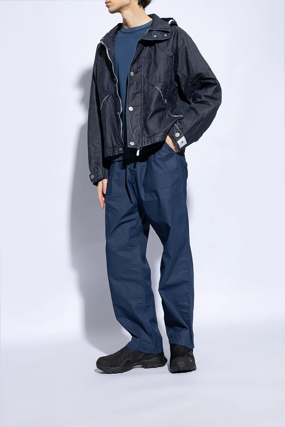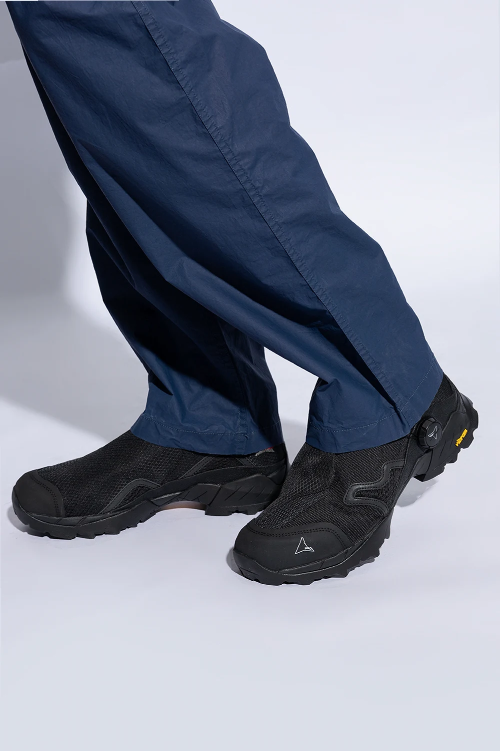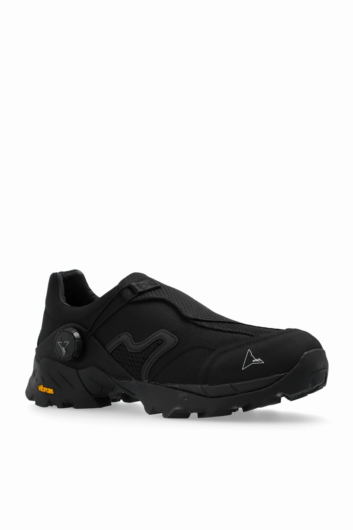 Introducing the 'Minaar' sports shoes by ROA, a testament to the fusion of high-end fashion with cutting-edge athletic functionality. Dressed in a dominant black hue, these sneakers exude a sleek, versatile appeal. Designed for the modern aesthete, the 'Minaar' features a low-profile silhouette accentuated by a mix of mesh and synthetic leather, enhancing both durability and breathability. The intricate patterns across the surface not only serve to strengthen the shoe but add a layer of visual intrigue. Noteworthy is the iconic triangular logo adorning the side, alongside subtle branding elements such as 'Vibram' on the sole, signifying the inclusion of premium sole technology known for its outstanding grip and longevity. A practical pull loop at the heel ensures ease of wear, encapsulating the thoughtful design principles at play. The robust, contoured Vibram sole underfoot promises superior traction, while the dynamic construction with reinforcement elements offers enhanced foot support and protection. Why Purchase This Product? Exceptional material combination for longevity and comfort. Exquisite design aesthetics with functional features. High-performance Vibram sole technology for unmatched durability. Signature ROA design elements for an exclusive look.